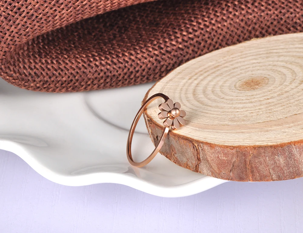 JeeMango, модное простое кольцо с маргариткой, ювелирное изделие из нержавеющей стали, розовое золото, милый стиль для девочек, подарок на Рождество и новый год, JR18138