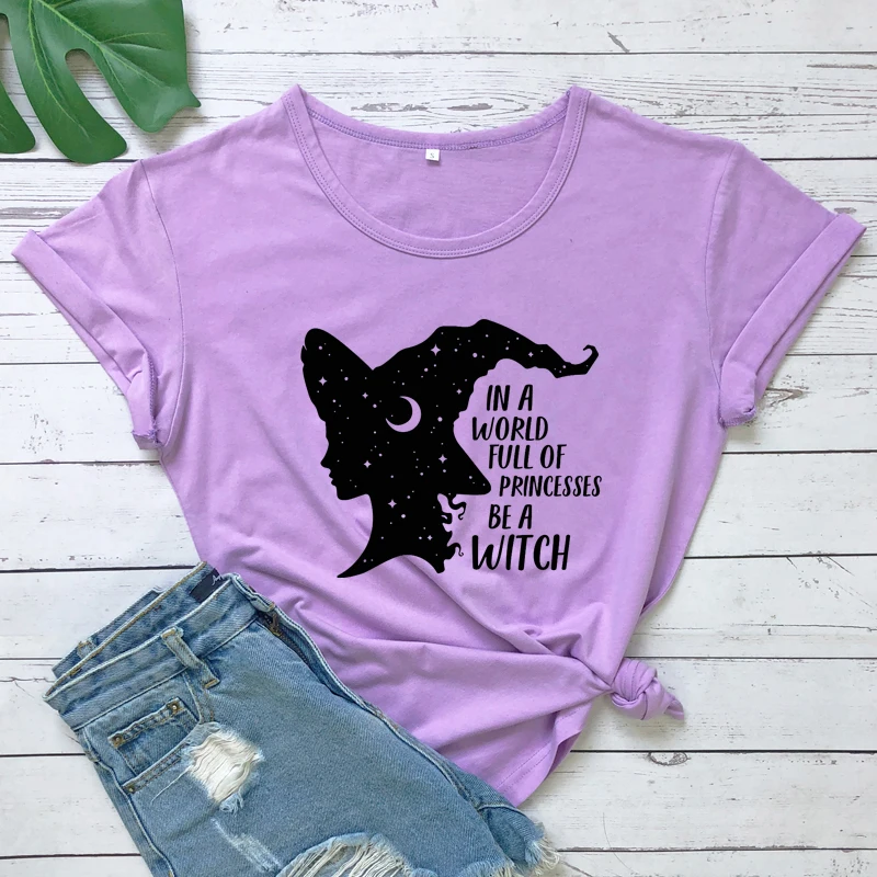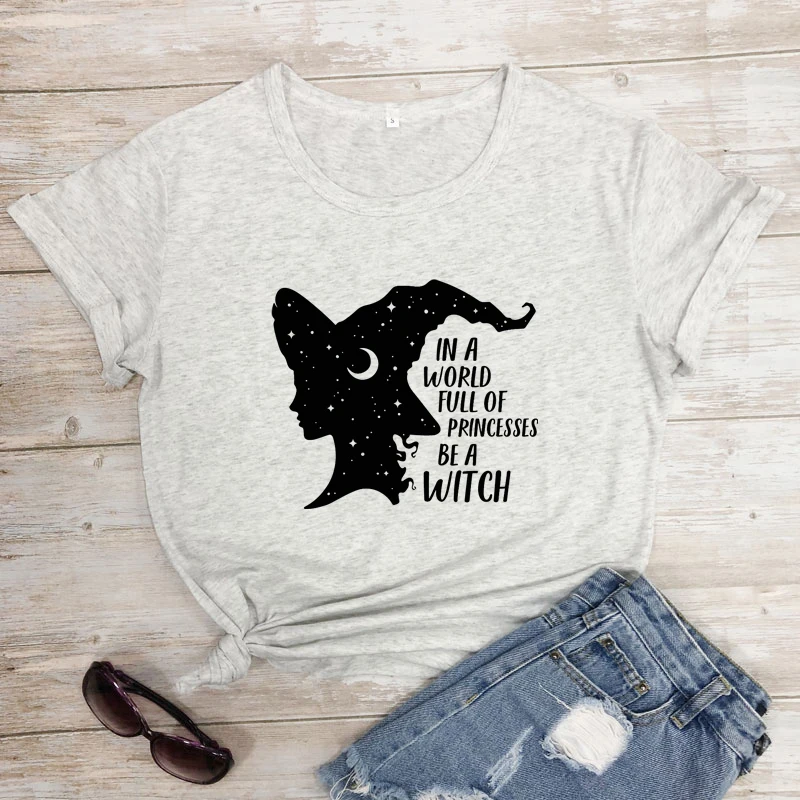 Женская футболка в стиле Хэллоуина, с принтом в виде звездных героев, с принтом ведьмы, в винтажном стиле, футболка с ведьмой