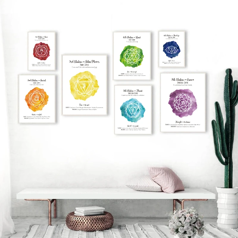 Плакат с 7 чакрами, 7 чакр, Йога, медитация, настенная Художественная печать, здоровье, искусство водной расцветки, холст, живопись, домашний декор