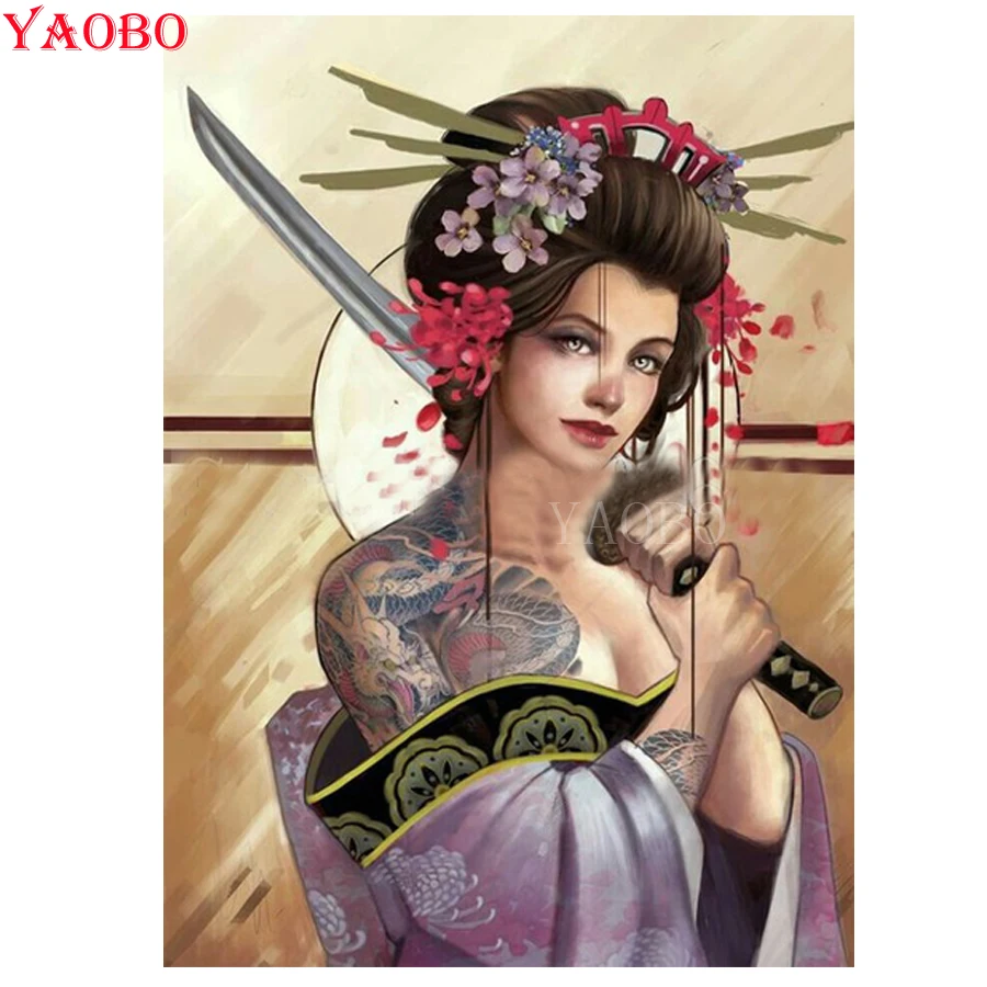 Полный квадрат/круглый 5D DIY Алмазная картина Япония Гейша Самурай 3d Алмазная вышивка, вышивка крестом Алмазная мозаика для девочек-подростков
