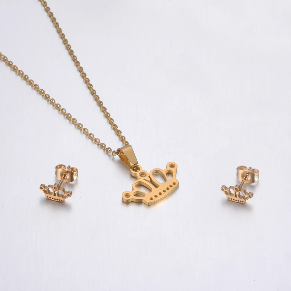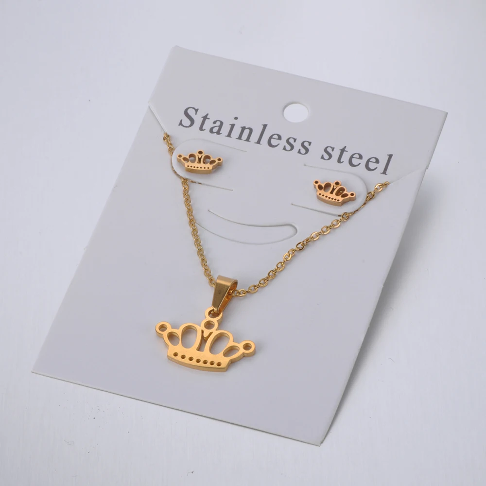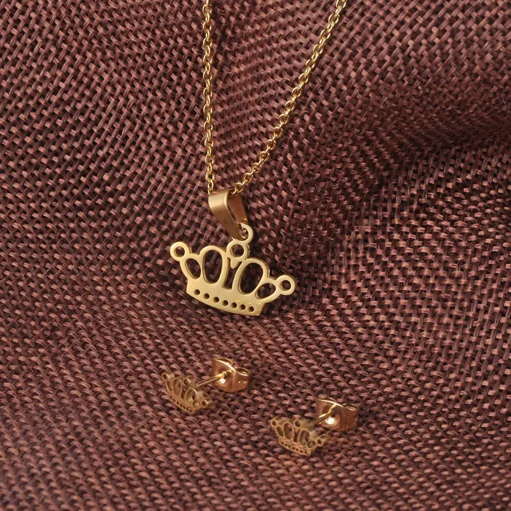 JeeMango, модные наборы из нержавеющей стали для женщин, ожерелье в форме короны, серьги для женщин, ювелирные изделия для помолвки влюбленных