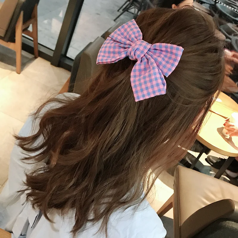 Корейские полосатые галстуки-бабочки, заколки для волос, сатиновые двухслойные заколки-бабочки, аксессуары для волос для девочек, Шпилька-бант