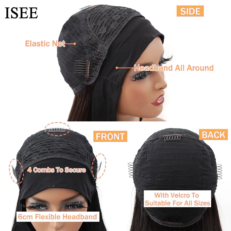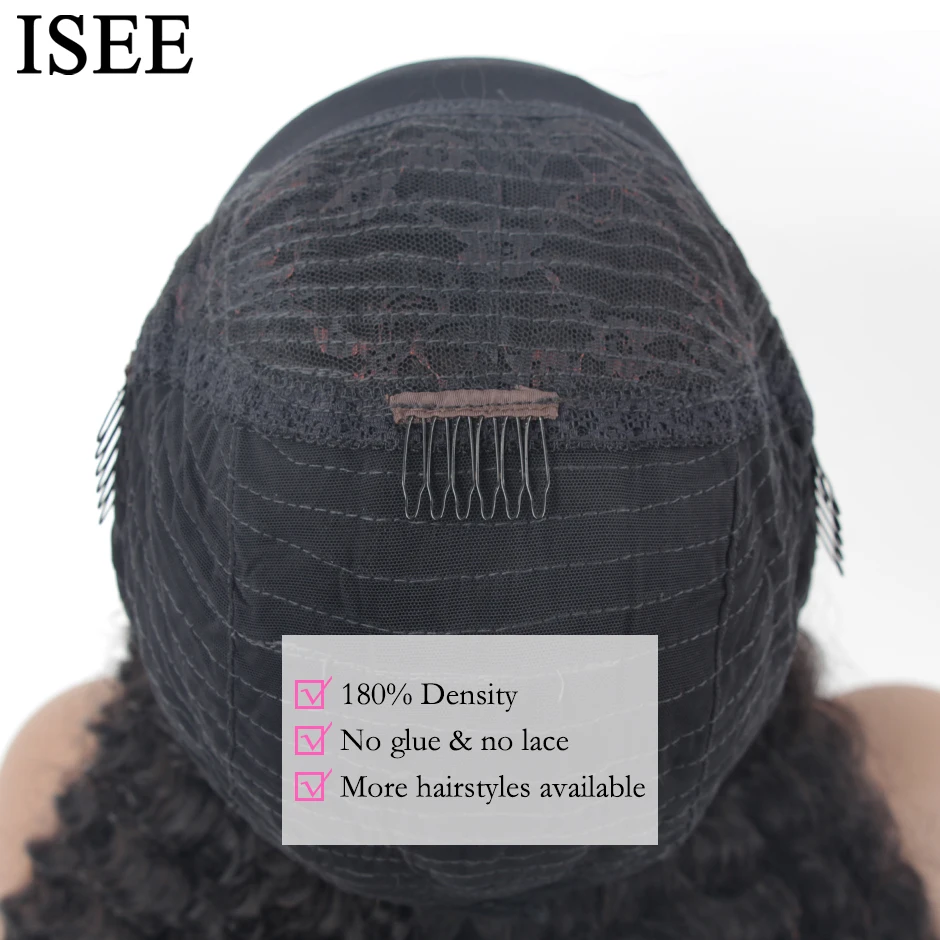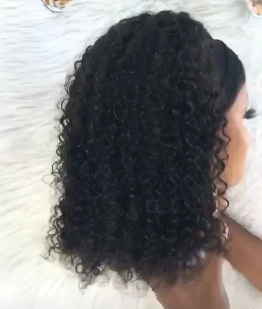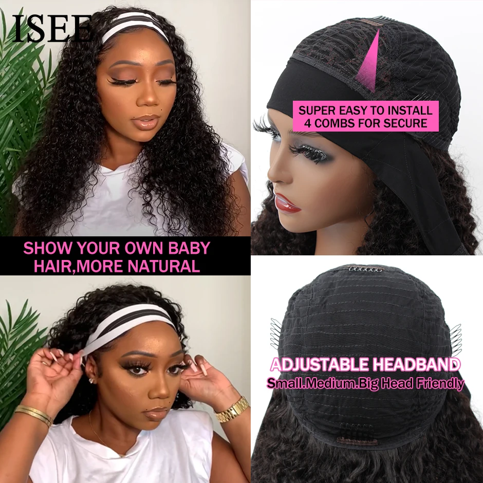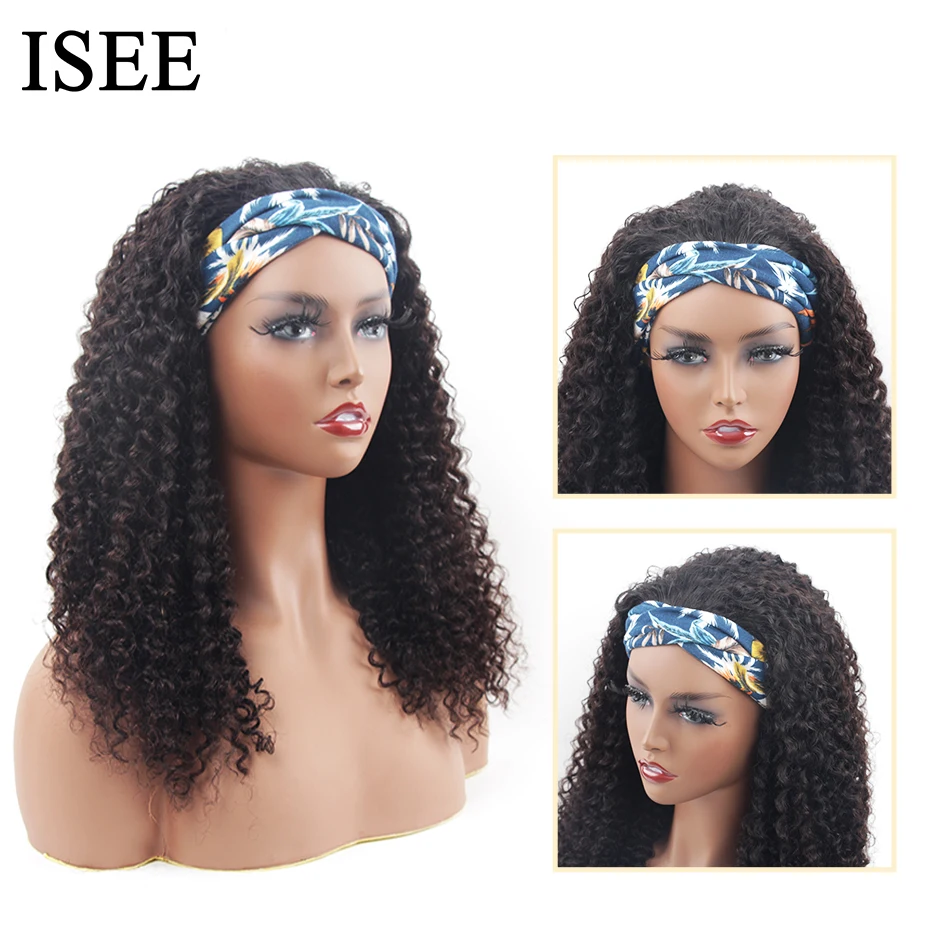 Kinky Curly Women's Headband Wig ISEE HAIR Scarf Wig Brazilian Human Hair Wig Sale Deep Curly Glueless Headband Wig Natural Hair