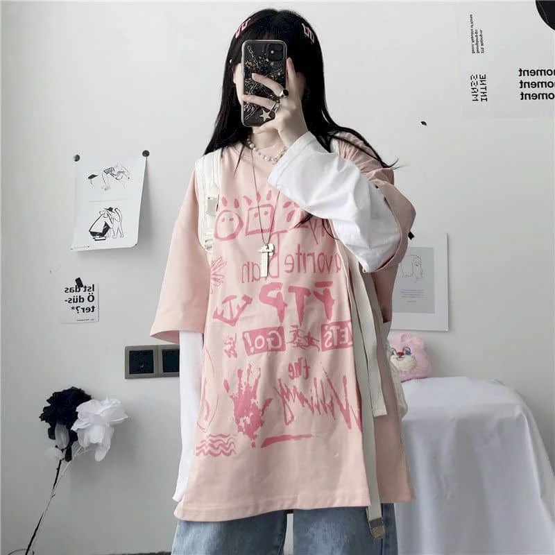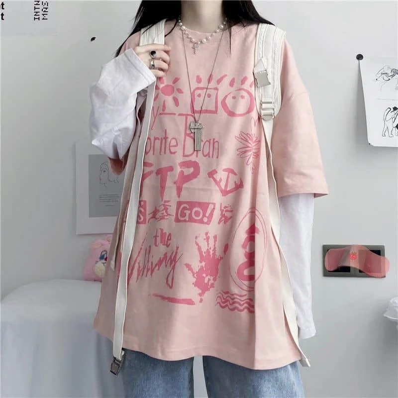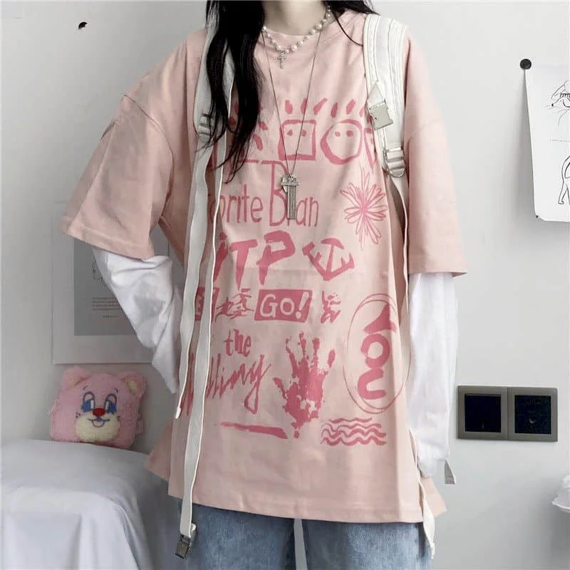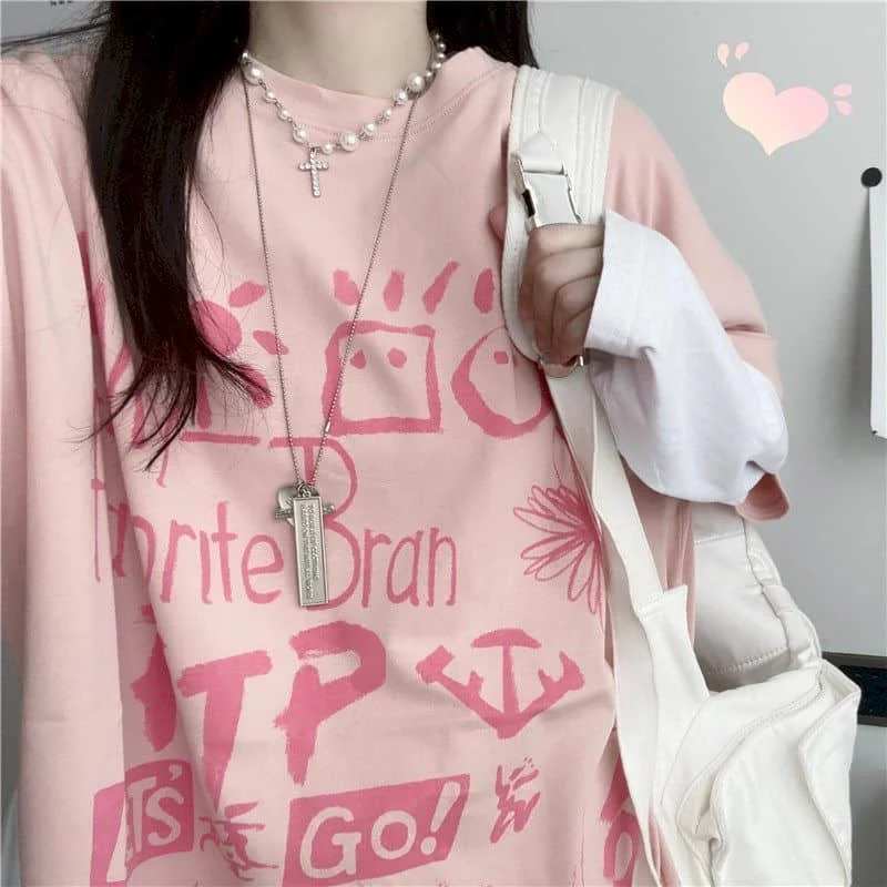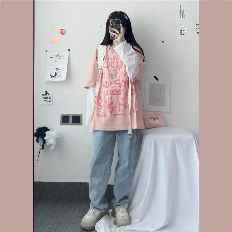 Японская Милая футболка, Женская Футболка Harajuku Bf, ретро топы, ...