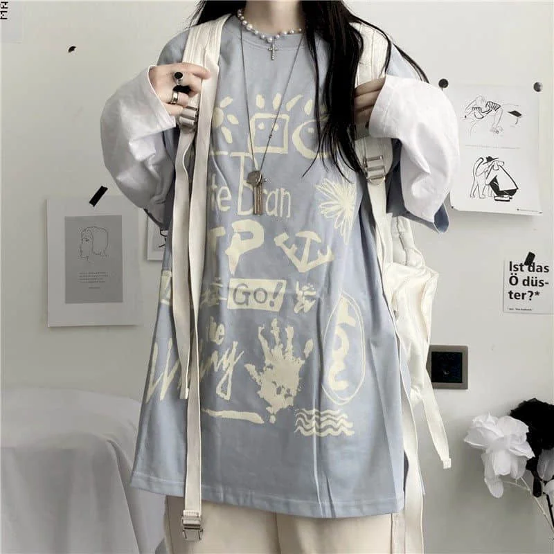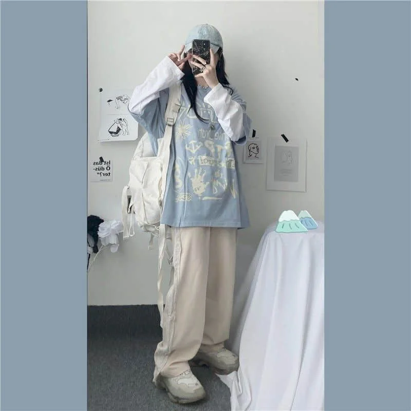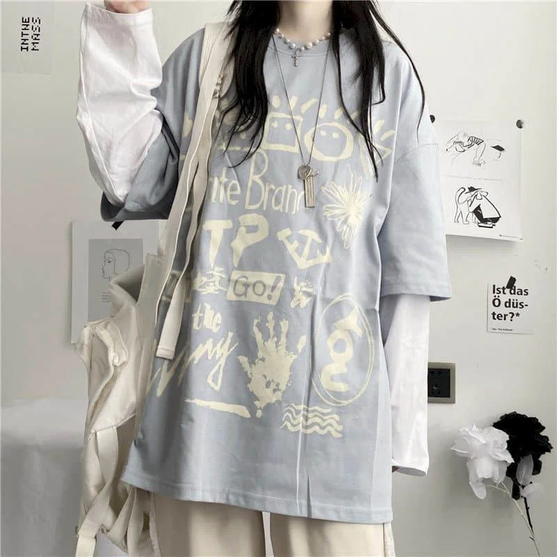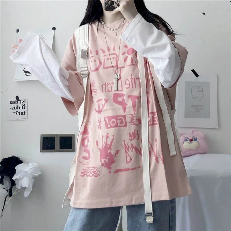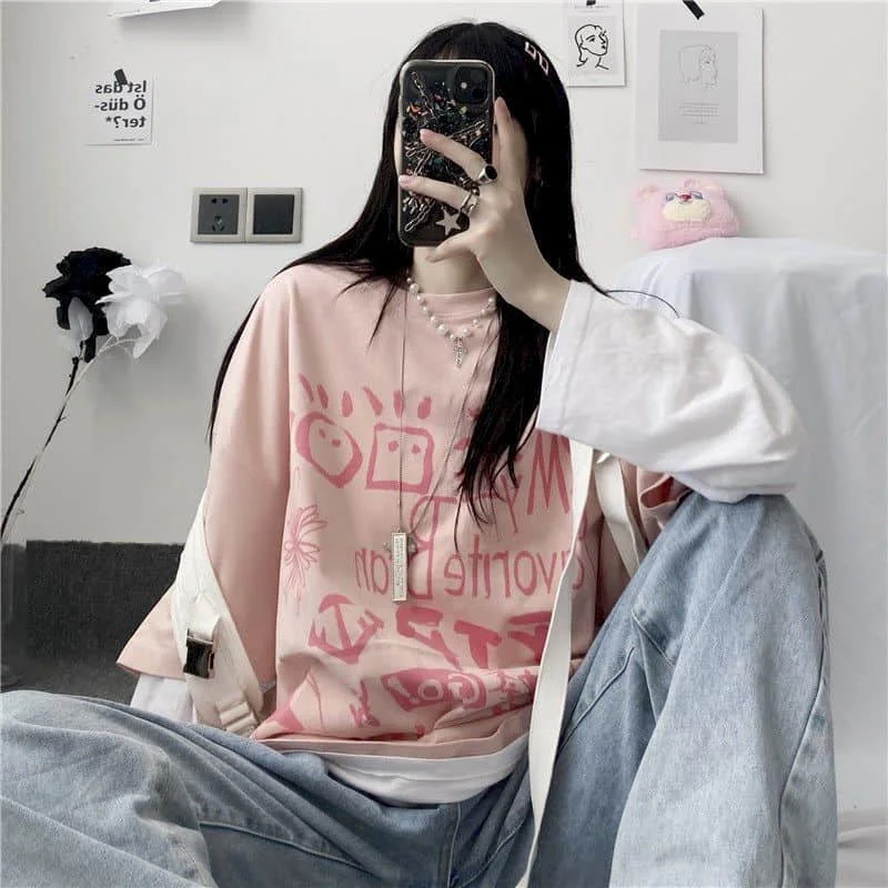 Японская Милая футболка, Женская Футболка Harajuku Bf, ретро топы, ...