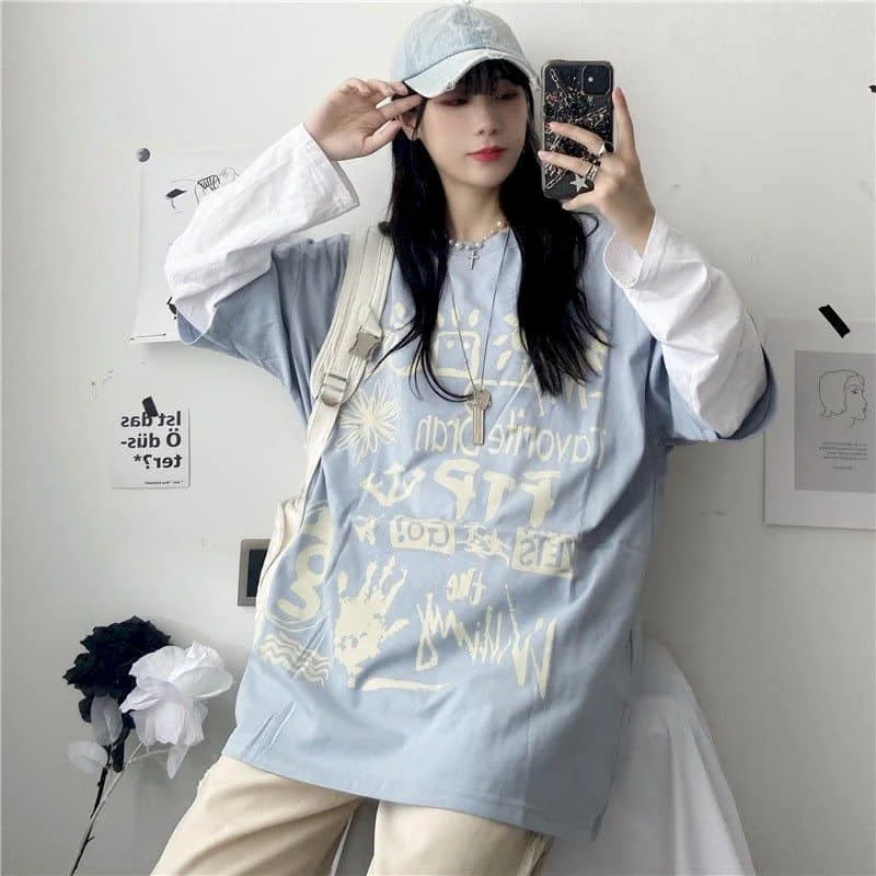 Свободная Женская футболка с длинным рукавом, осень 2021, новая Кор...