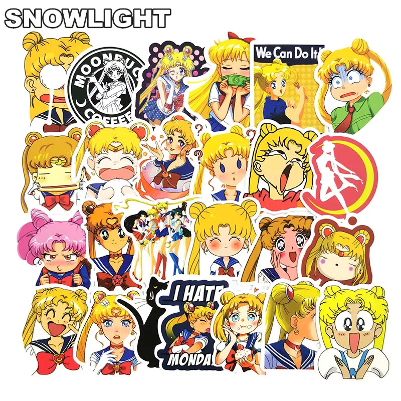 10 Вт, 30 Вт, 50 шт./упак. с рисунком из аниме «Сейлор Мун» стикер, цветовой стикер карикатуры, для катания на скейтборде для ноутбука чемодан наклейки Косплей АксессуарыUSD 1,78/Шт/Лот 1