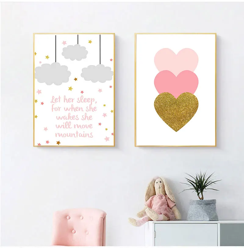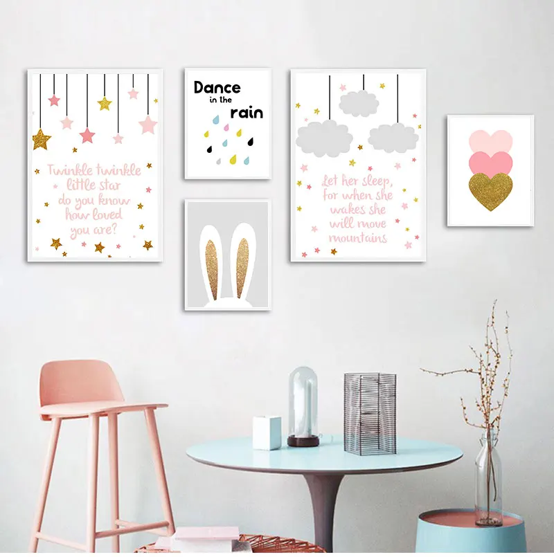 Картина на стену с мультяшным Кроликом, розовым сердцем, искусство на холсте, картина на стену в скандинавском стиле, украшение для детской гостиной