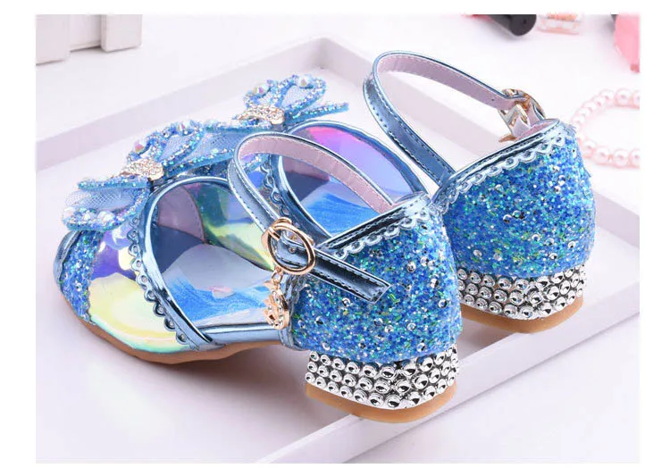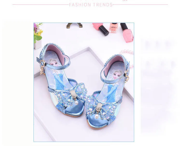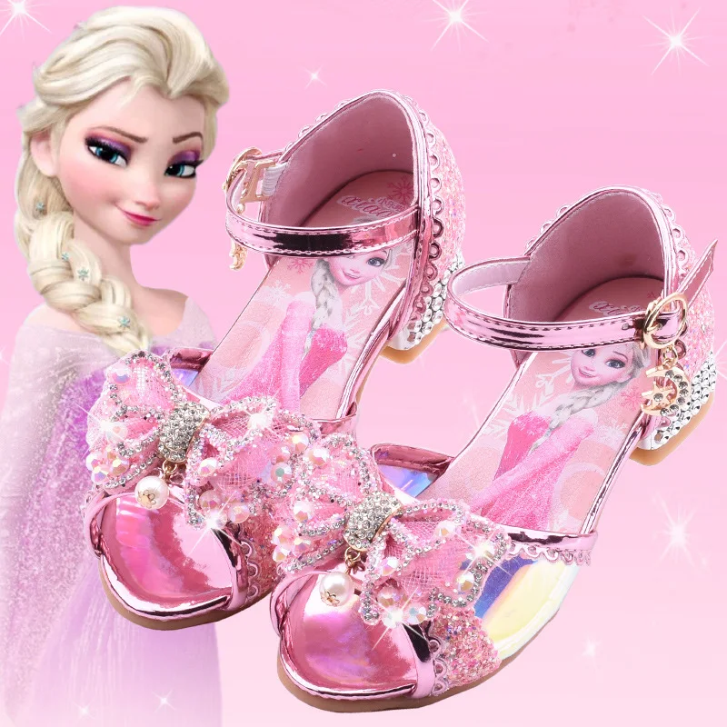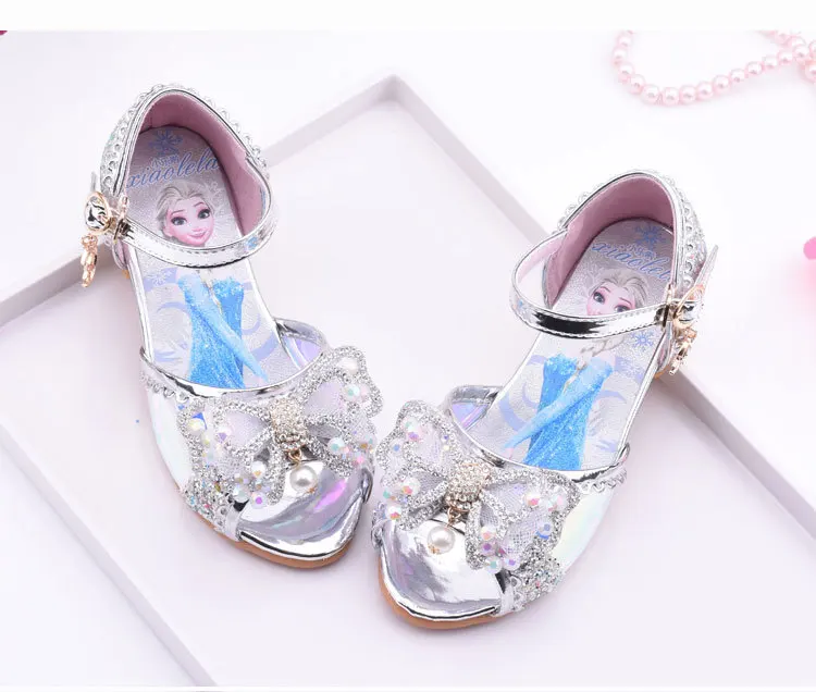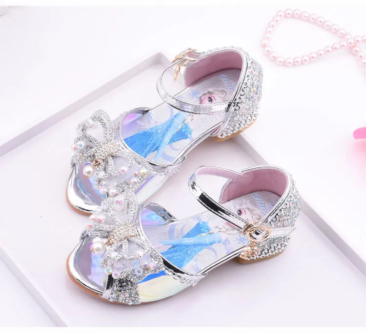 Disney Frozen Elsaдетская кожаная обувь для девочек; Летние сандалии с открытым носком и кристаллами; Детская обувь на высоком каблуке для девочек