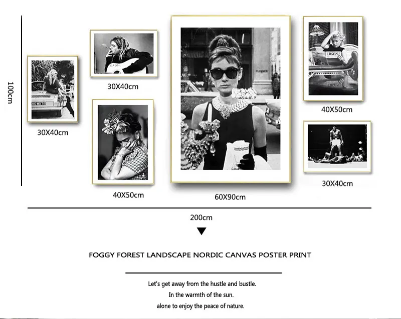 Картина на холсте с изображением известного человека, кинозвезды, черно-белая Настенная картина для гостиной, современные декоративные принты