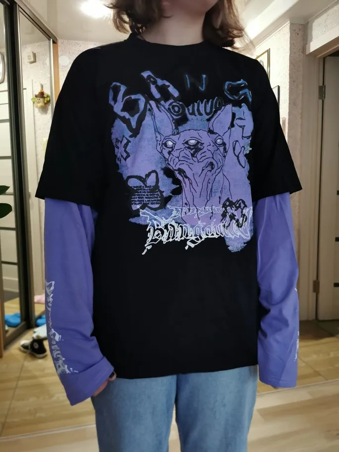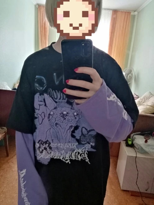 Продавец, ты лучший! Кофта просто чудесная, к сожалению, сфотографировать нормально не получается, но покупкой я довольна. Пришло очень быстро, почти за неделю. Качество неплохое, плотность как у обычной футболки, принт хороший, четкий. На рост 168 взяла xl, не пожалела, сидит как оверсайз