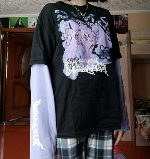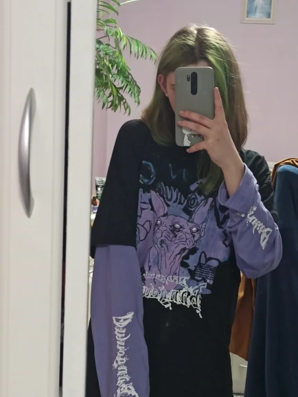 Лонгслив пришёл с дырками сзади. Я расстроина. Для тех кто всё таки хочет заказать, на рост 164 берите XL, больше брать не советую, если хотите оверсайз (рукава будут длинные, мне до кончиков пальцев).