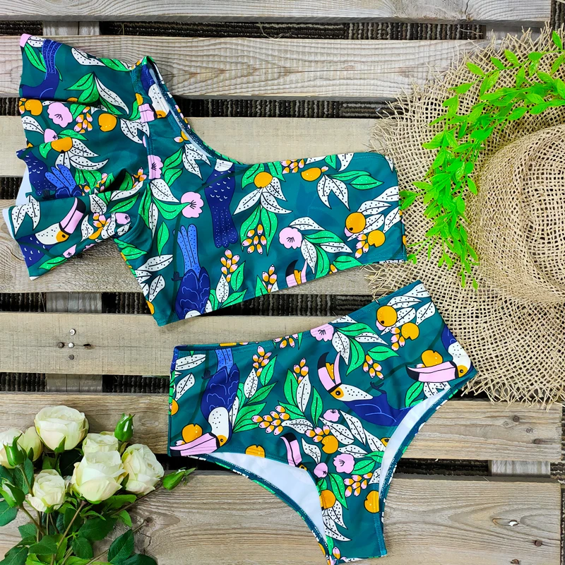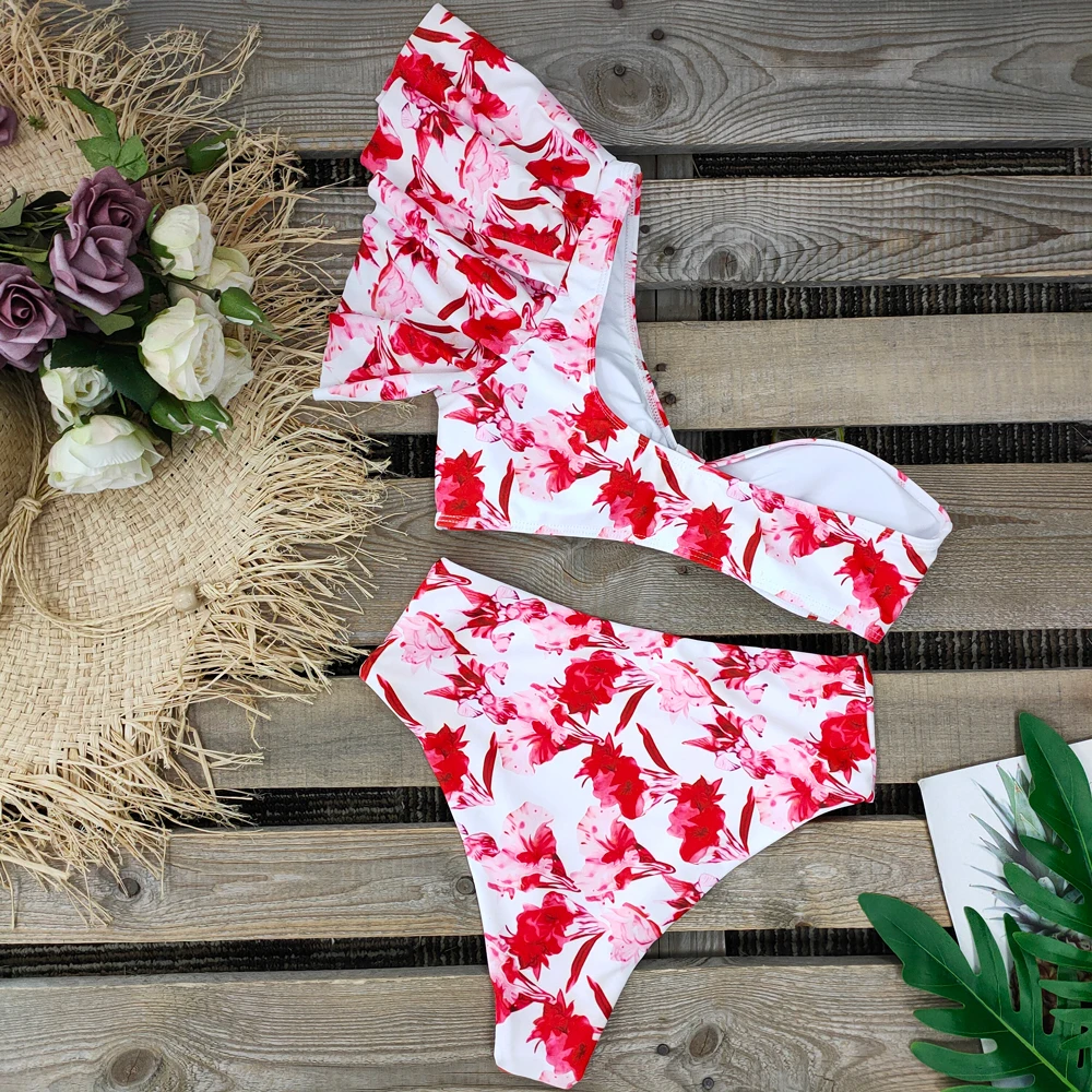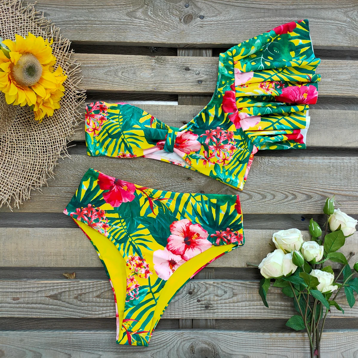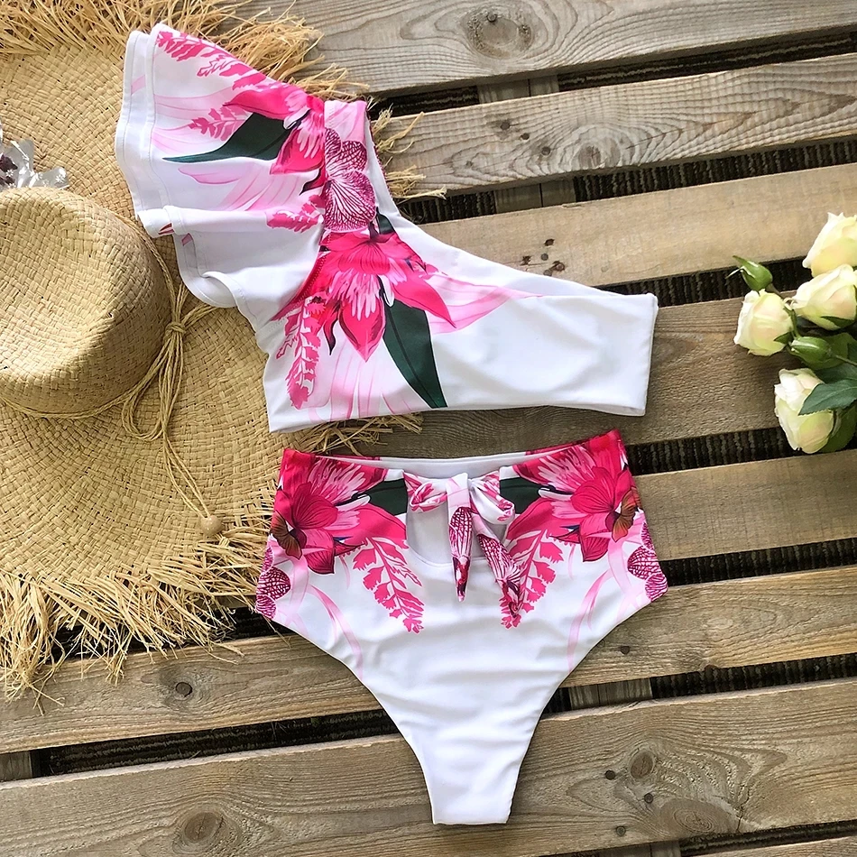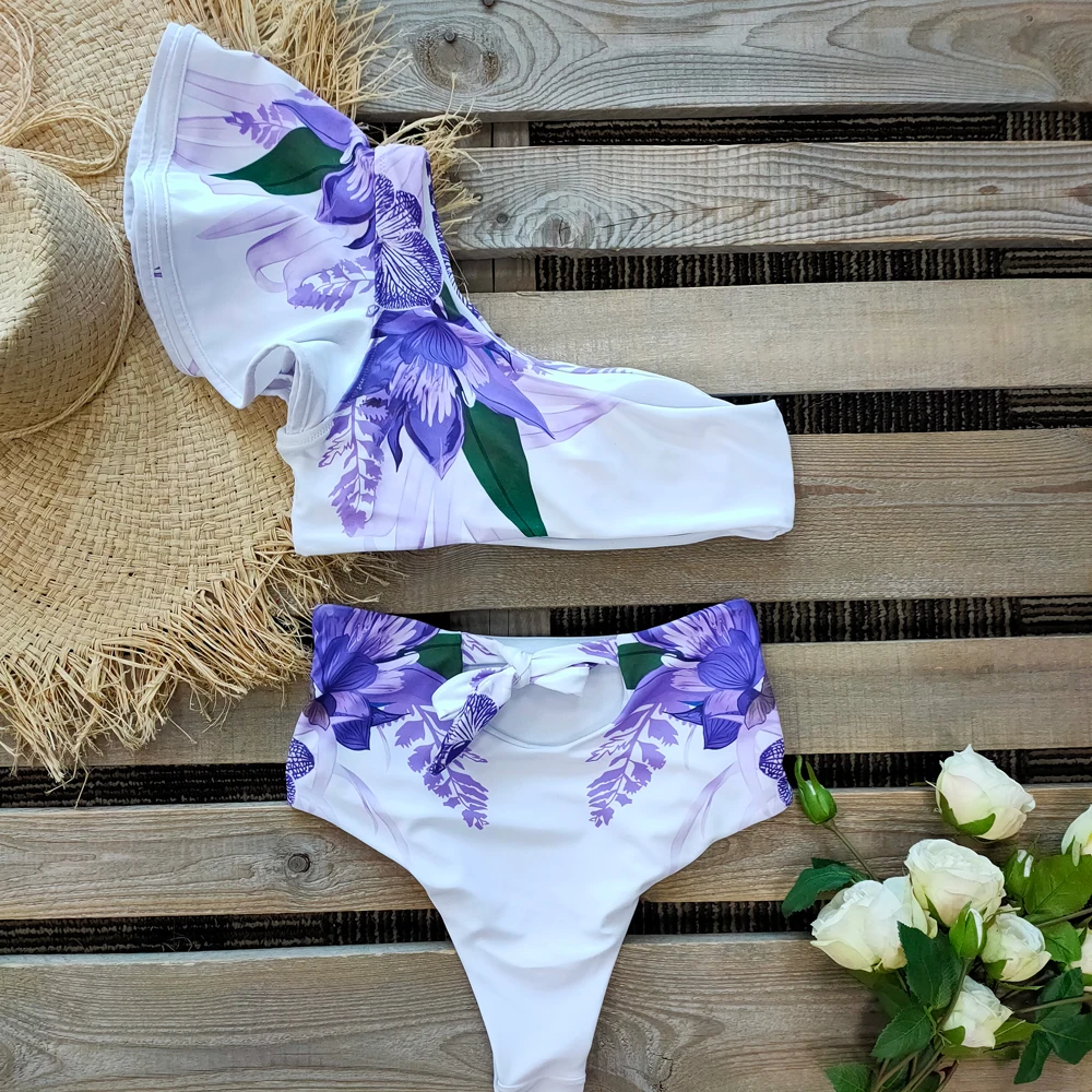 Купальник на одно плечо, бикини с принтом, комплект бразильского бикини, купальники с высокой талией, купальный костюм, летняя пляжная одежда