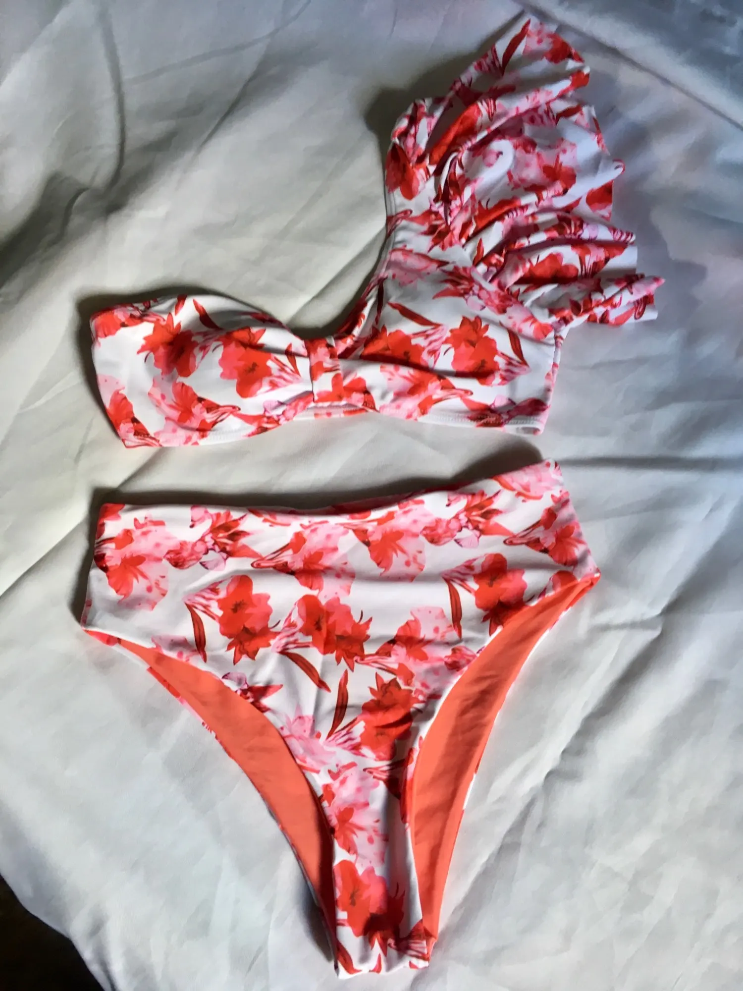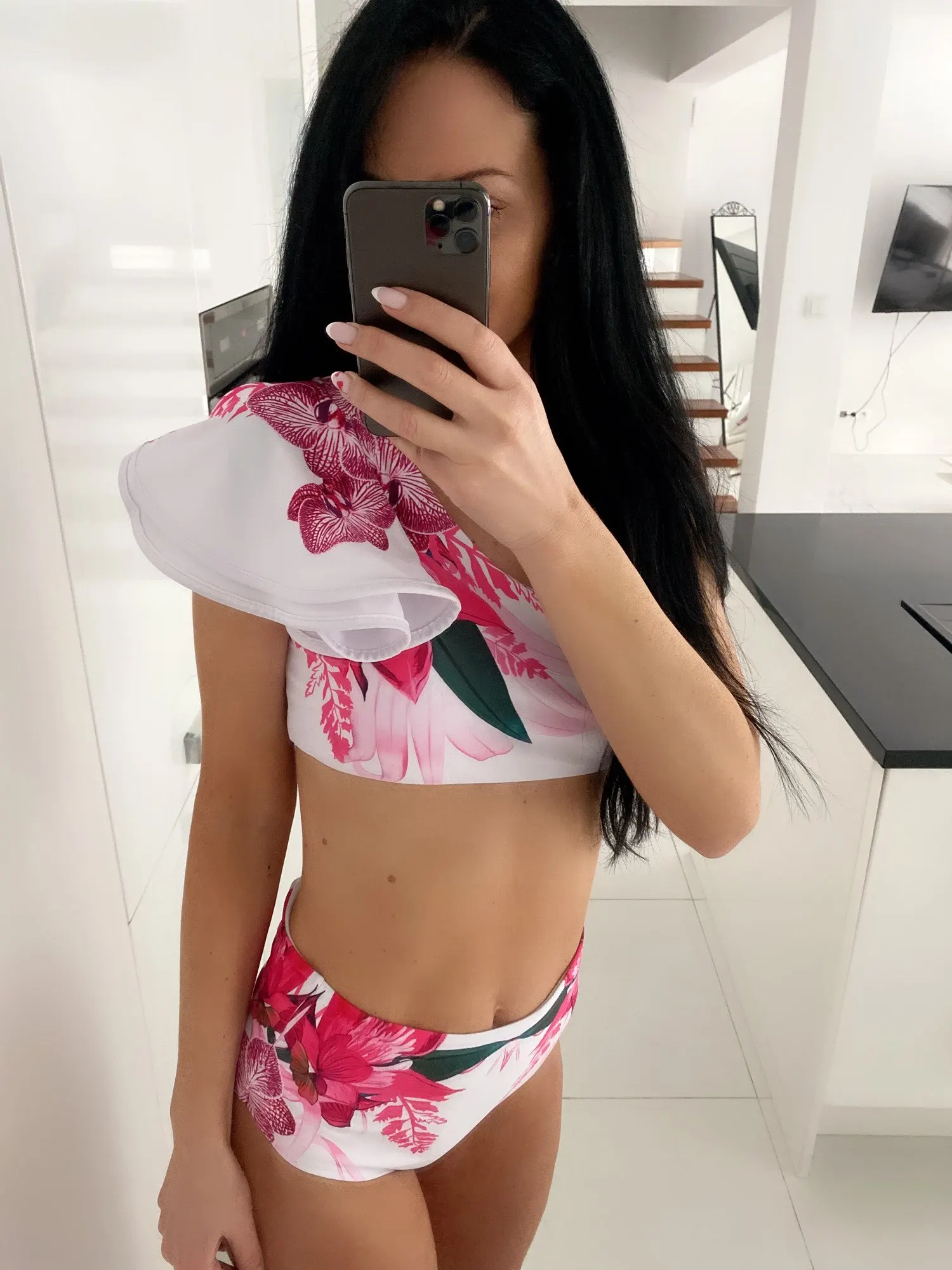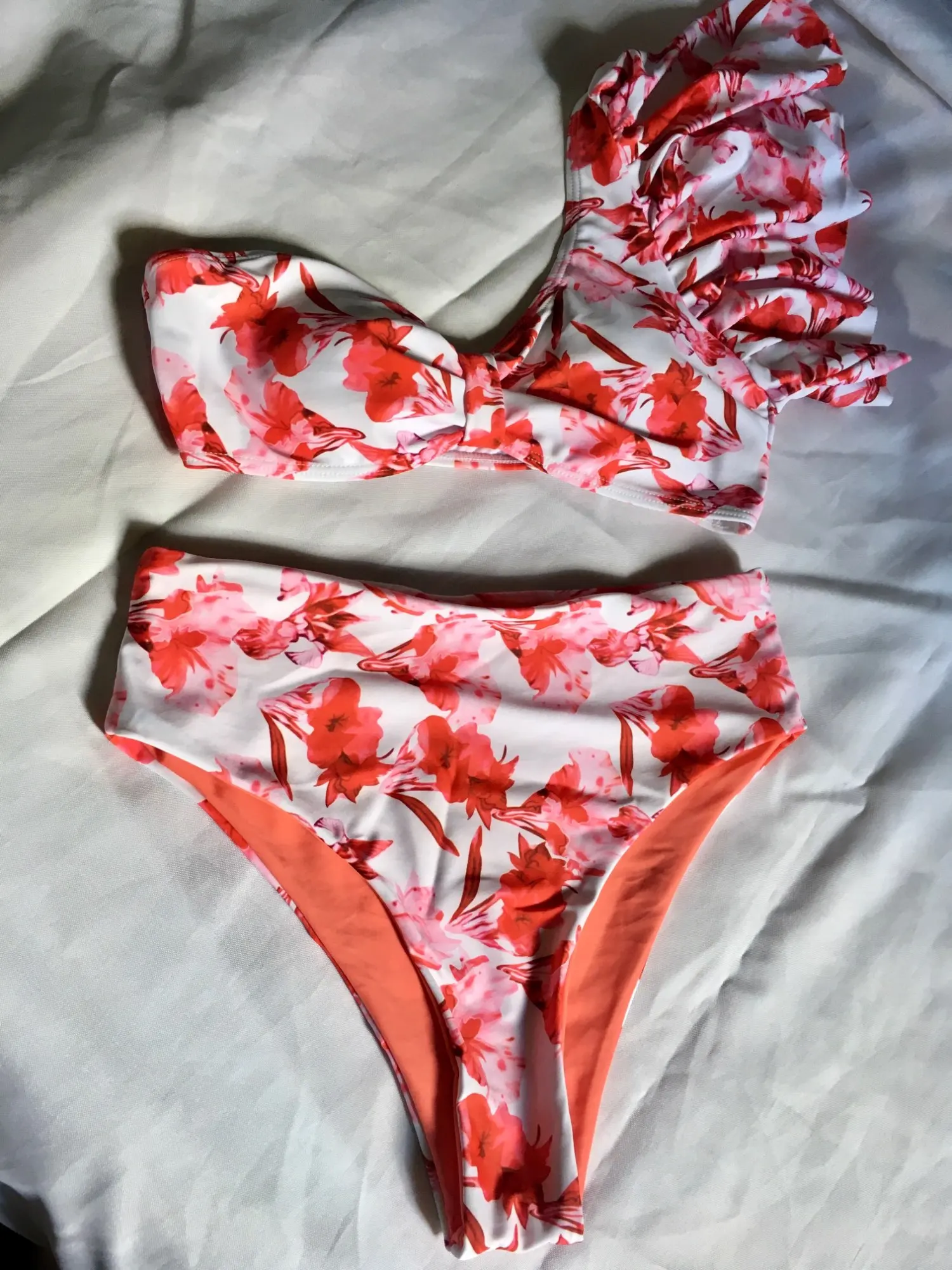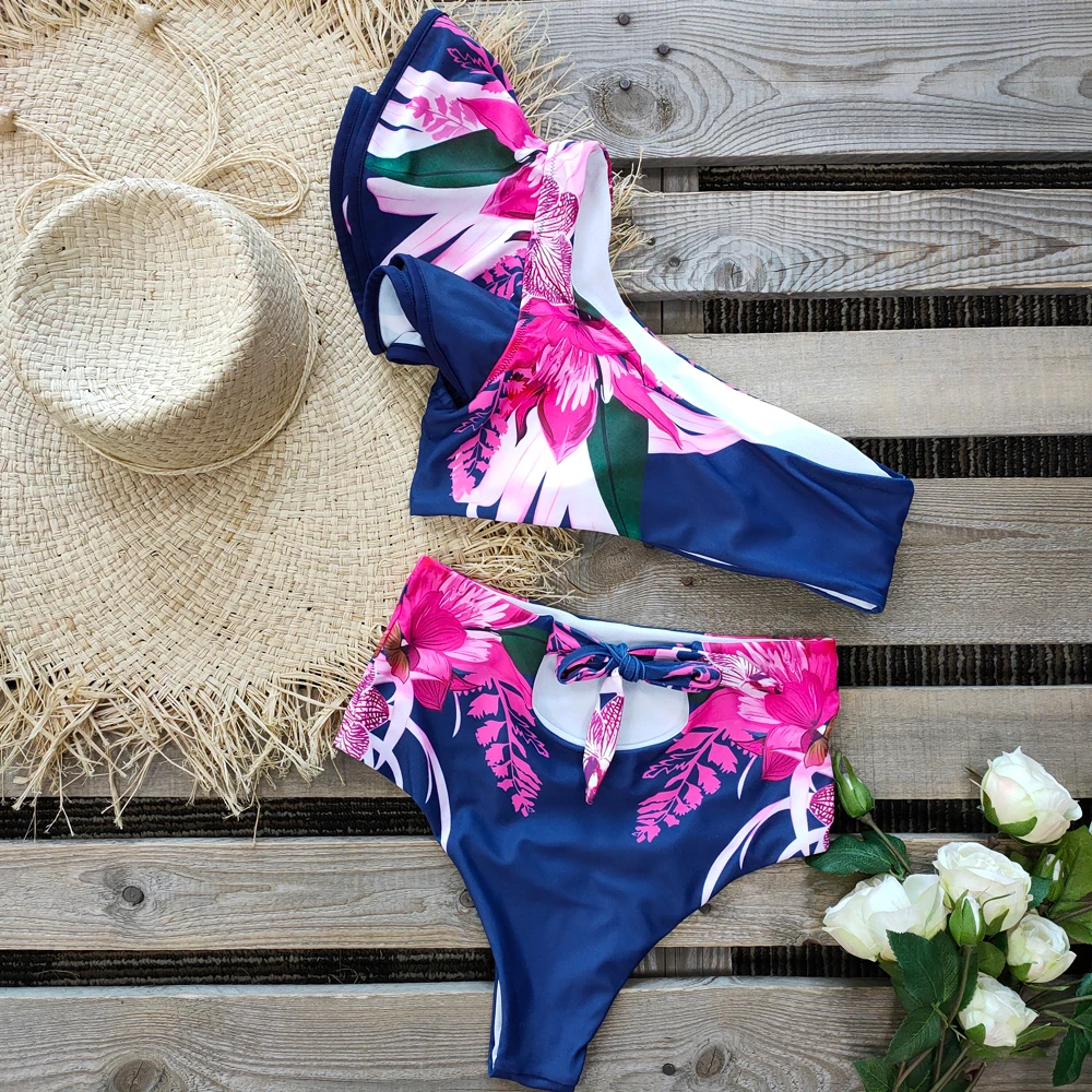 Купальник на одно плечо, бикини с принтом, комплект бразильского бикини, купальники с высокой талией, купальный костюм, летняя пляжная одежда