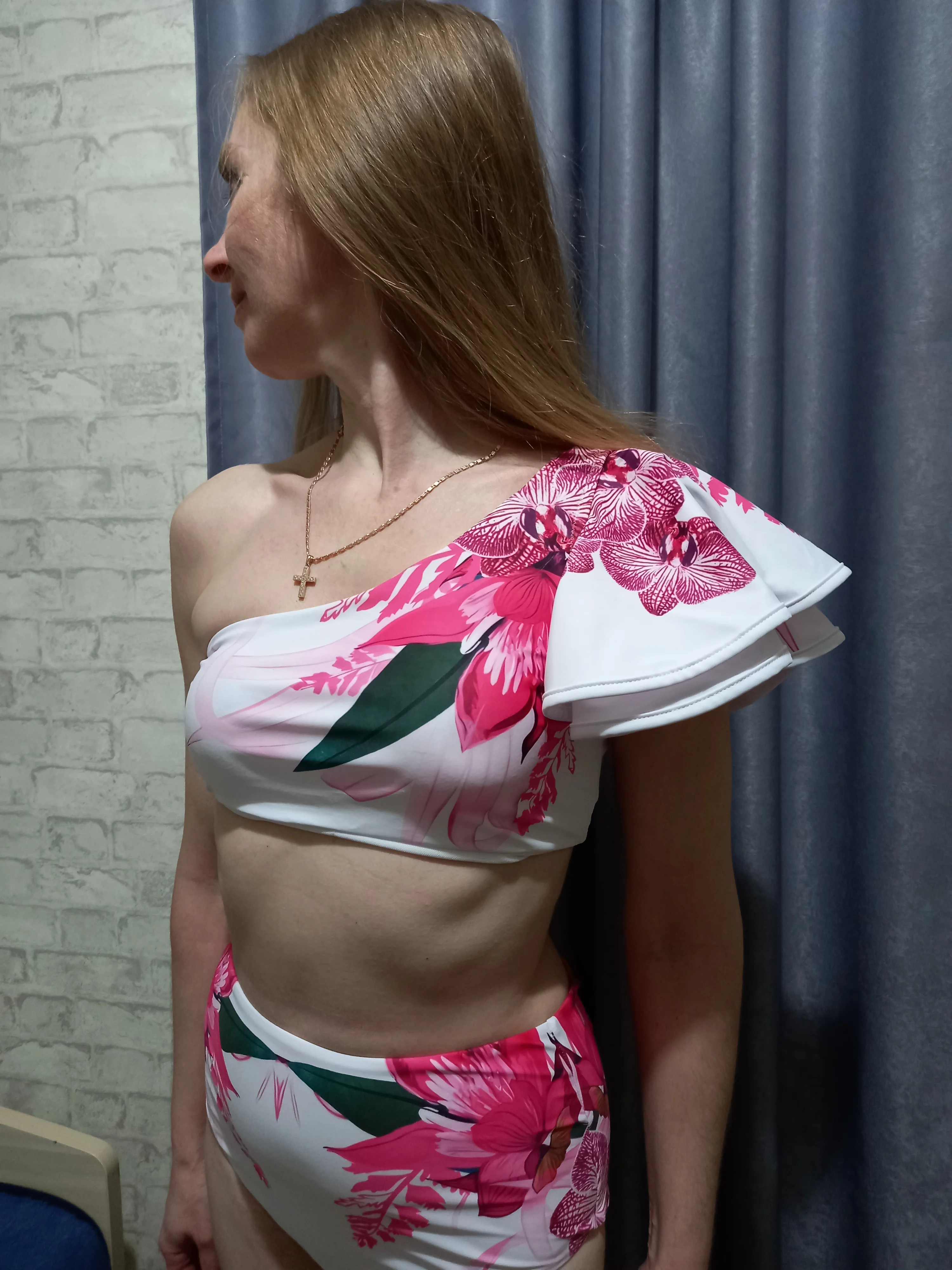 Заказал у этого продавца два купальника. Этот купальник очень понравился качеству. Но я думаю, что обхват груди маленький для размера M. Если у вас большой бюст, то выбирайте на один размер больше, потому что он не держится должным образом. В противном случае цвет такой же, как на фотографии, и качество превосходно по цене. Я загружу больше фотографий позже.