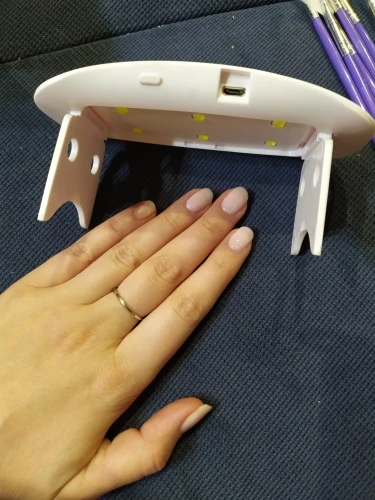 Отличный набор. Переживала, что лампа не просушит лак, но все супер, лампу удобно брать с собой в поездки, в сложенном виде меньше смартфона. Один слой держу в лампе три раза. Лаки понравились. В наборе брала 01 и 02. 02(белый) немного густой. Несказанно понравился матовый топ - он очень крутой. Топы и база упакованы в одну коробочку, 2 лака также в отдельной упаковке. Наполнение флаконов 4/5.