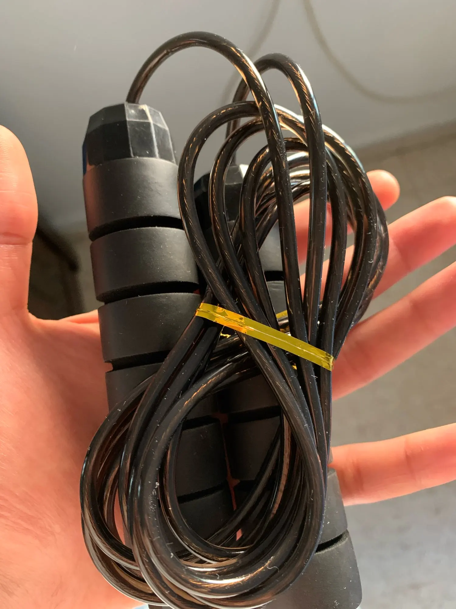 Отличный предмет, прочный и сдержанный, я люблю его, легко регулируемый, быть укороченным или увеличенным через отверстия в ручках и эластичность жесткой веревки, я очень рекомендую этот продукт.