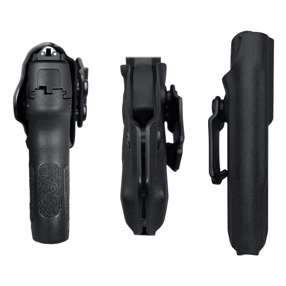 Регулируемое удерживающее давление и расширение входа: Используйте универсально доступную отвертку phillips, отрегулируйте винт для достижения регулировки герметичности, чтобы достичь лучшей прочности извлечения и стремиться к самому быстрому времени хранения. Расширяя вход, проще положить в пистолет и эффективно избежать износа. Его также можно повесить снаружи ремня для использования в качестве совы. Пожалуйста, выберите другую руку.