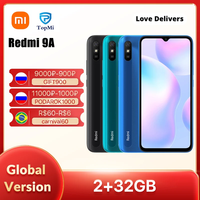 Смартфон Xiaomi Redmi 9A 9 A, 2 Гб ОЗУ, 32 Гб ПЗУ, Восьмиядерный процессор MTK Helio G25, экран Глобальная версия дюйма, 6,53 мАч, задняя камера 13 МП с ии