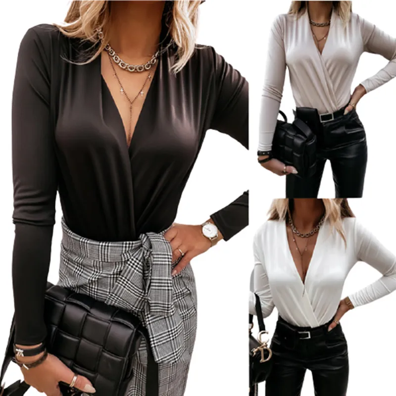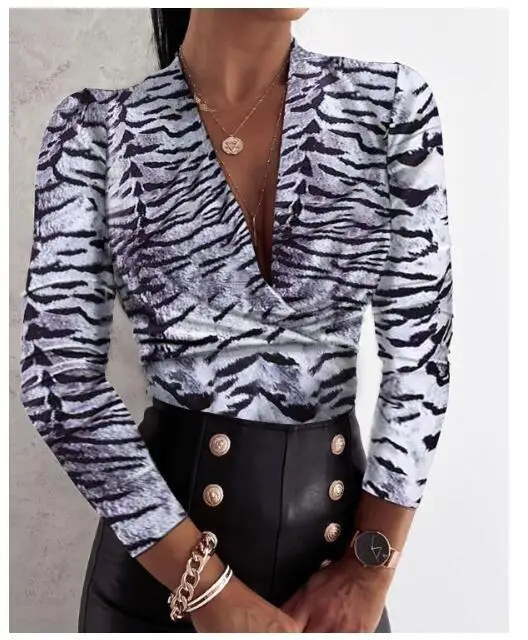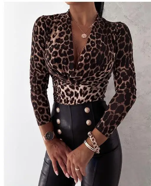 Женская рубашка с леопардовым принтом и глубоким V-образным вырезом
