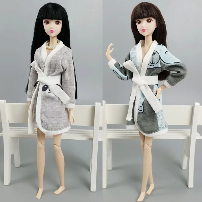 Банный халат с рисунком панды и поросенка для куклы Барби, костюм для ванной, зимняя Пижама, спальный халат, повседневная одежда для игрушек Барби 1/6