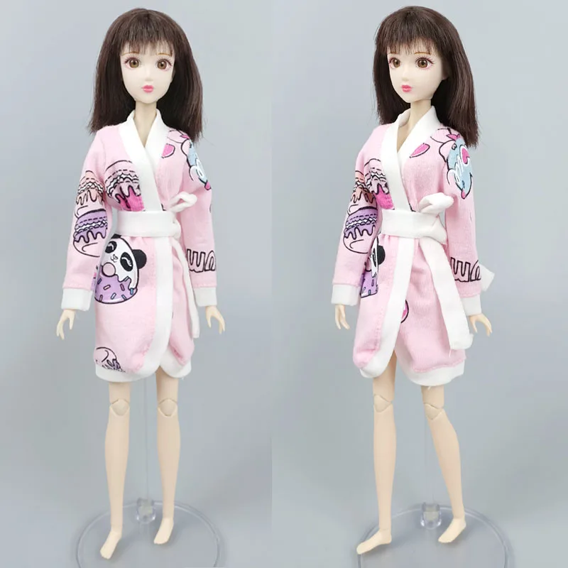 Мультяшный банный халат с изображением панды свинки и цветов для куклы Барби, зимняя Пижама для ванной, спальное платье, повседневная одежда для игрушек Барби 16