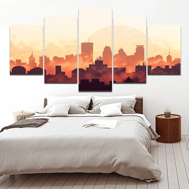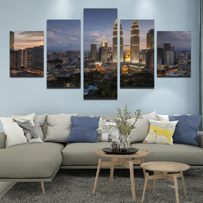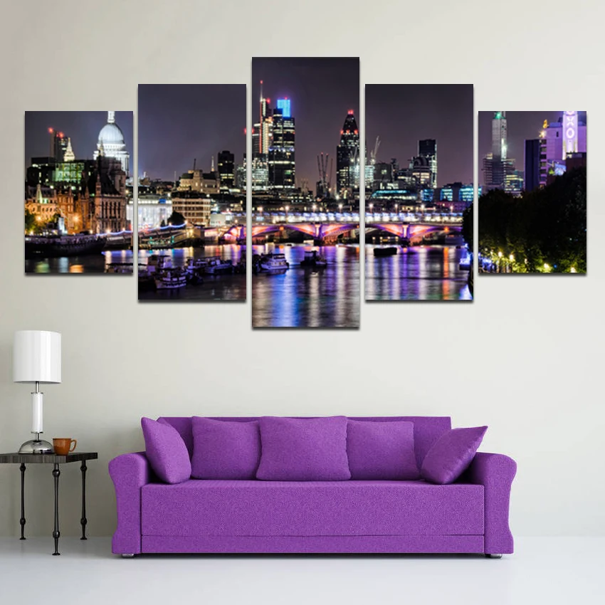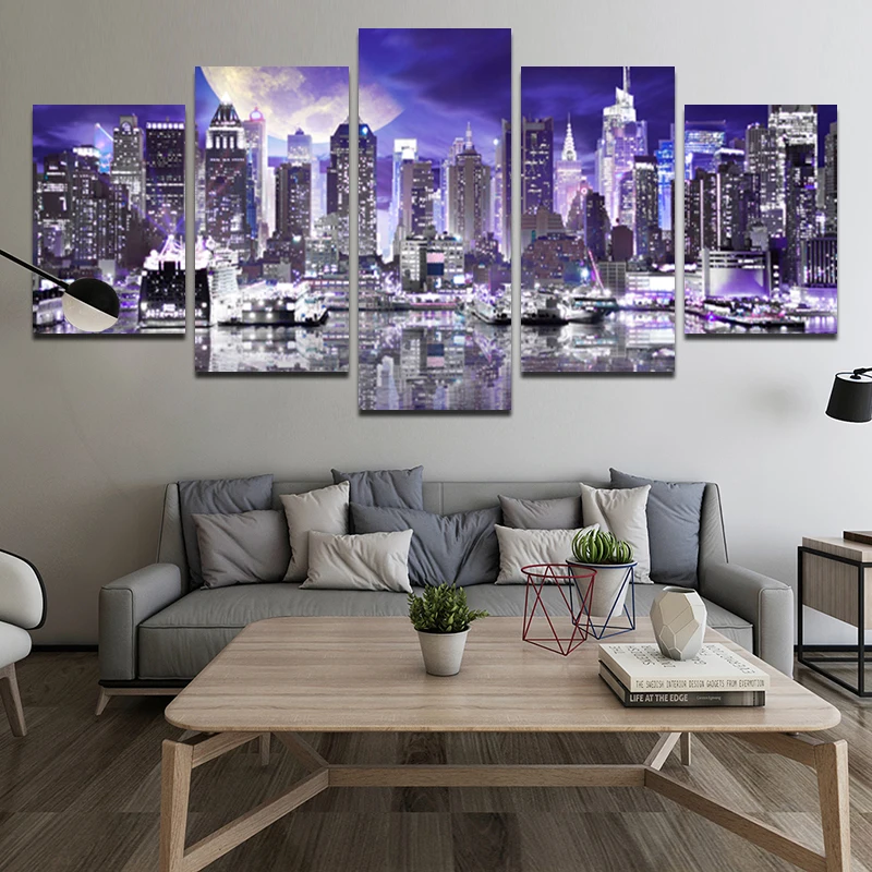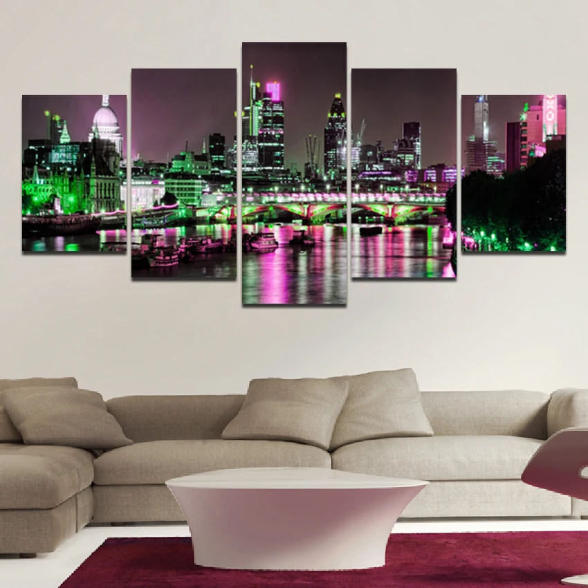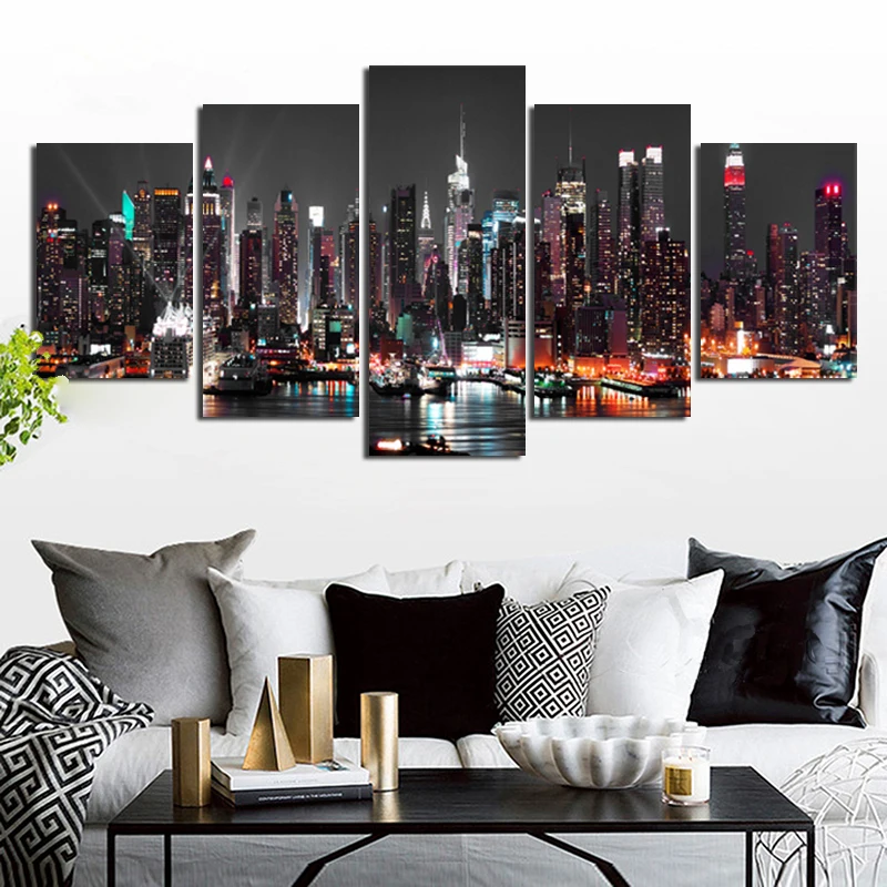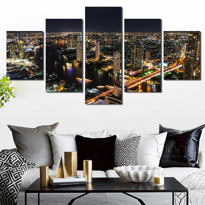 Городской Ночной природный пейзаж, 5 шт., Постер, украшение для дома, HD печать, холст, живопись, декор для гостиной, отеля, зала, спальни