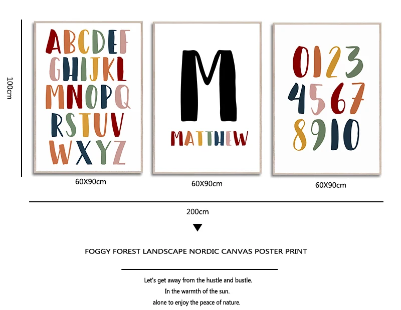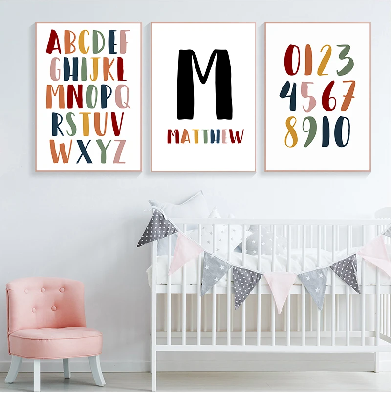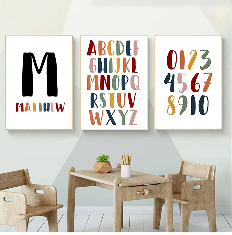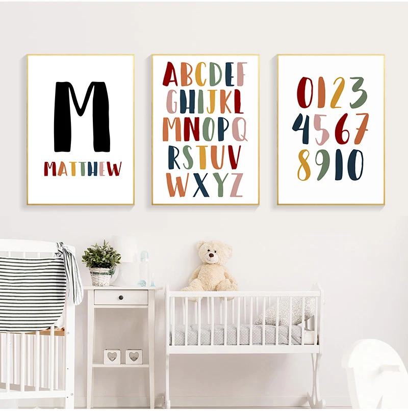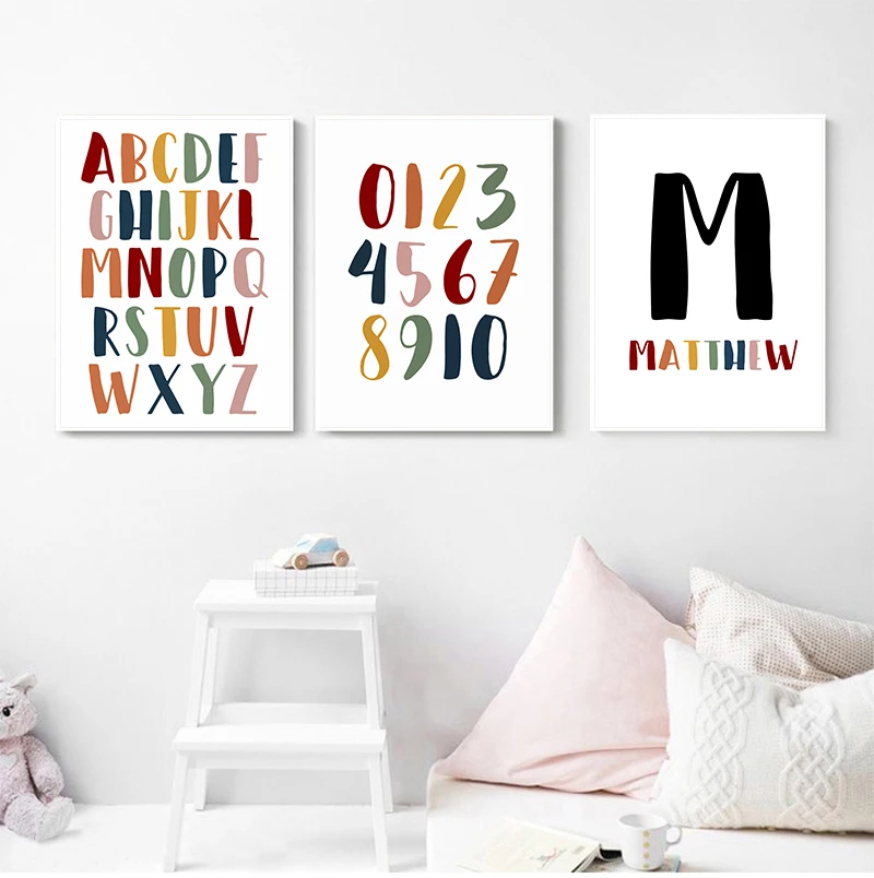 Картина на холсте с буквами и именем на заказ для маленьких мальчиков, картина с буквами алфавита и цифрами для детской комнаты, Настенная картина, картины, декор для детской комнаты в скандинавском стиле