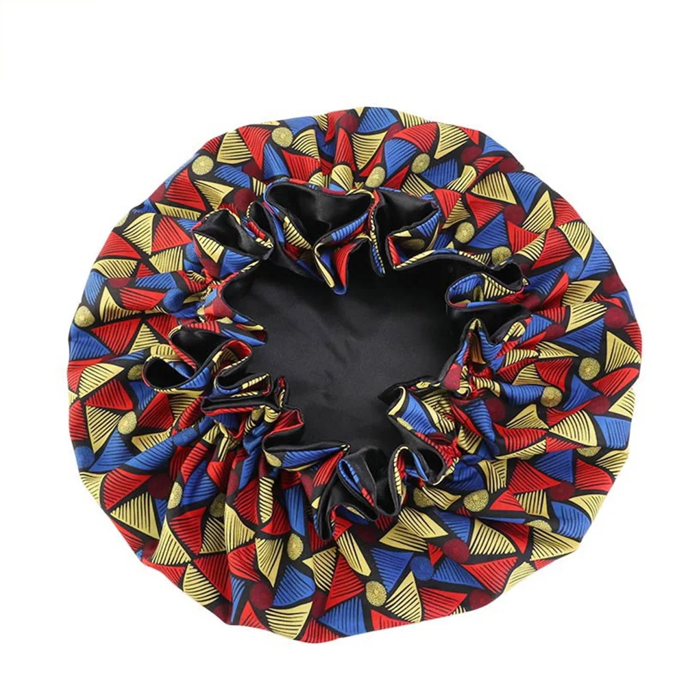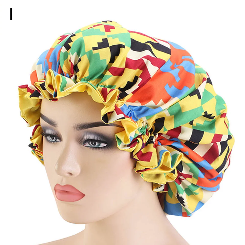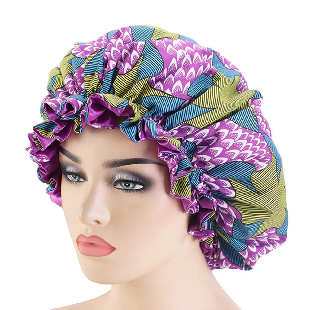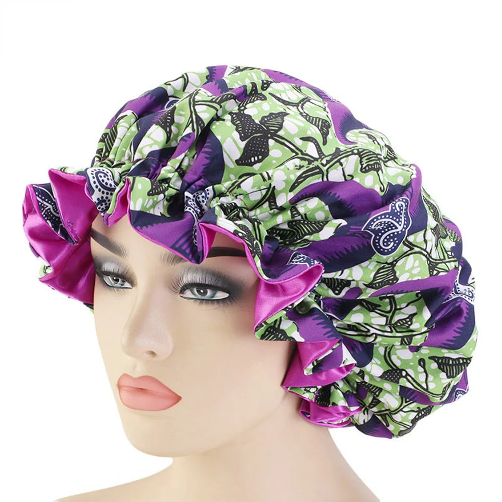 Головной убор для сна, стильная двухслойная Атласная шапочка с цветочным принтом, большого размера, для сна