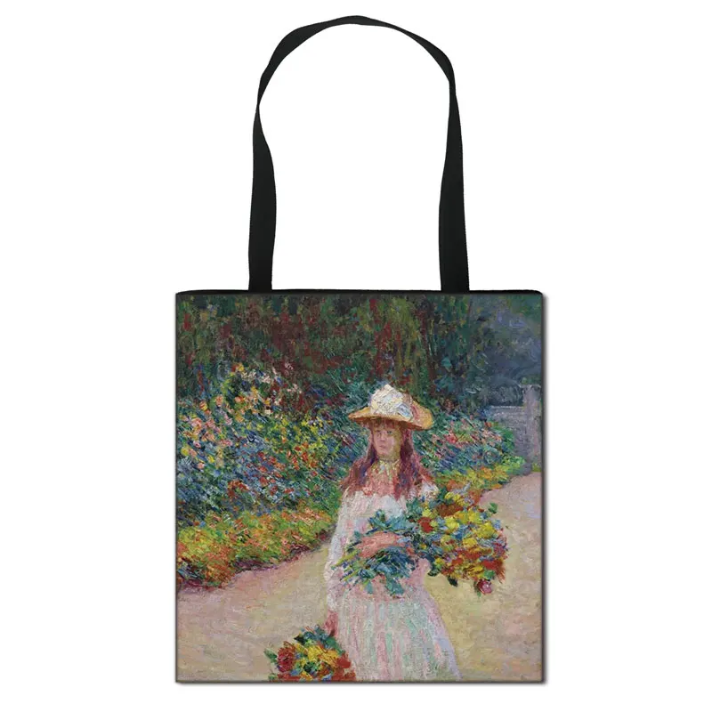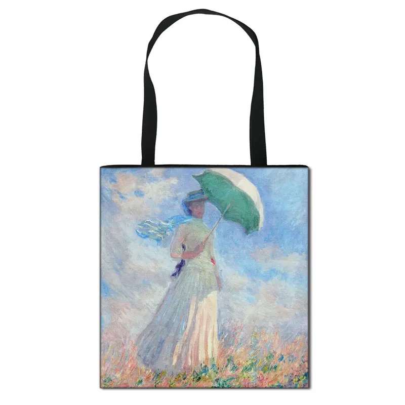 Женская сумка для покупок с масляной живописью, повседневная портат...