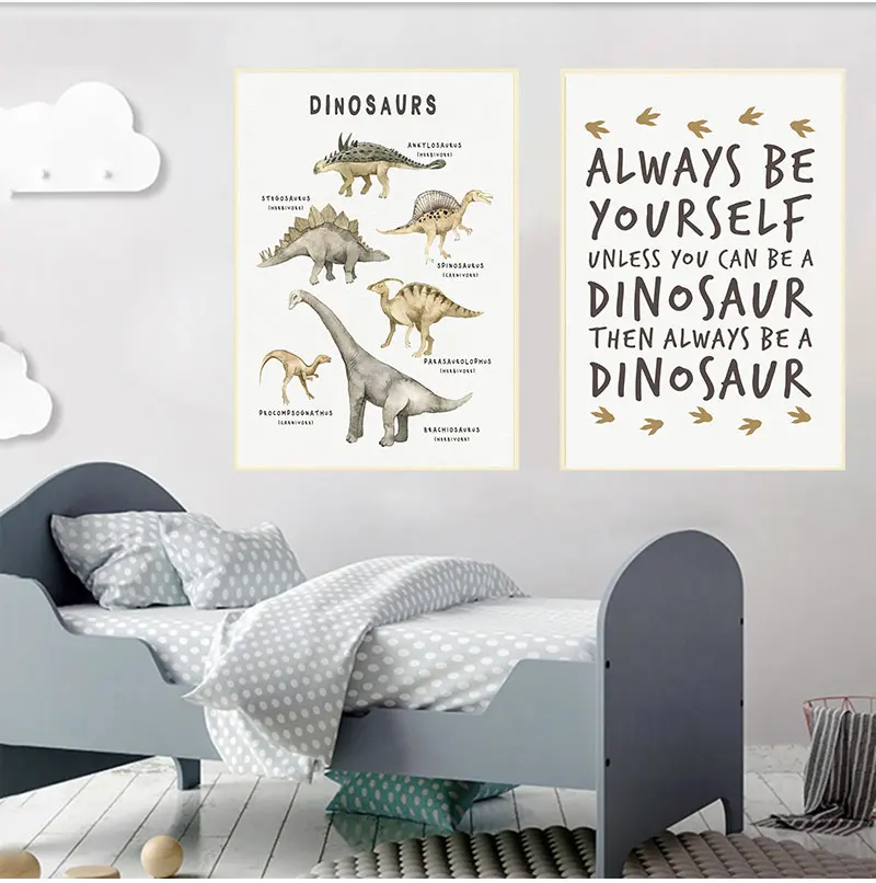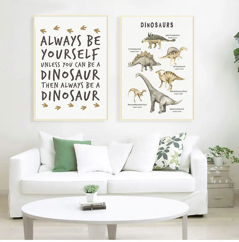 Настенная картина с изображением динозавра для мальчика, модульная Картина на холсте для игровой комнаты, обучающая картина для детской комнаты, декор для детской комнаты