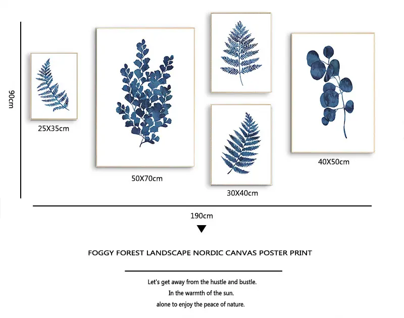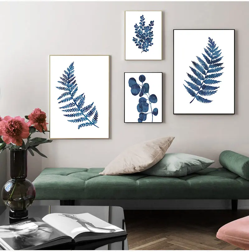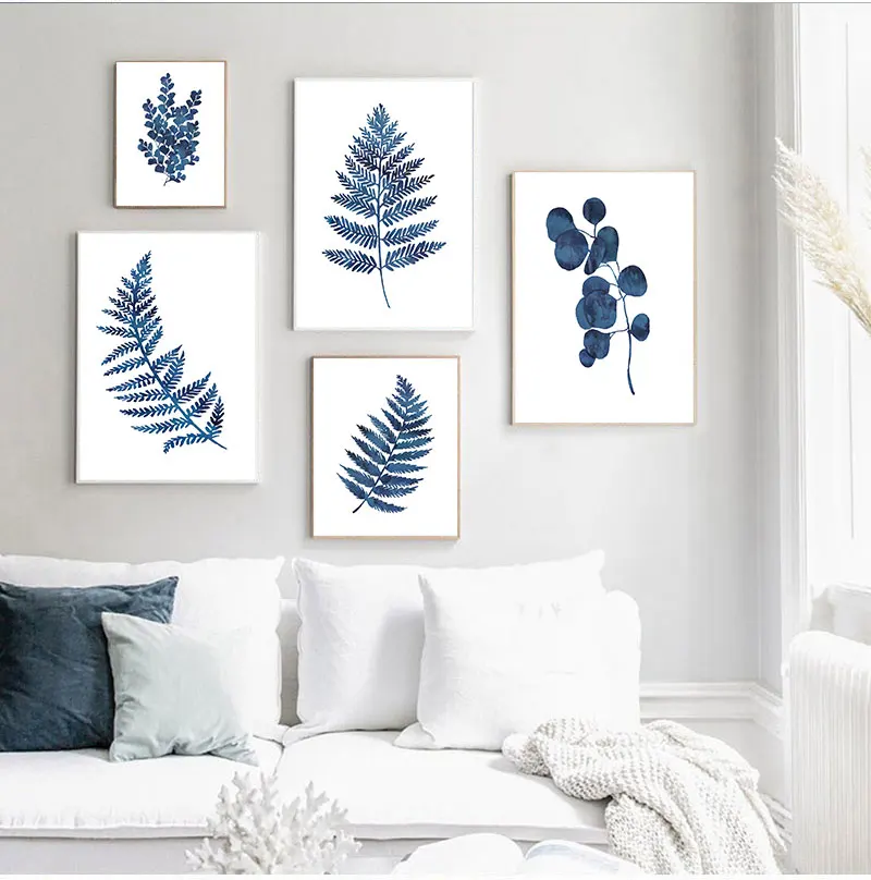 Чернила синий папоротник принты акварель лист индиго растительное искусство холст s, чернила синий эвкалипт листва живопись домашний декор стен