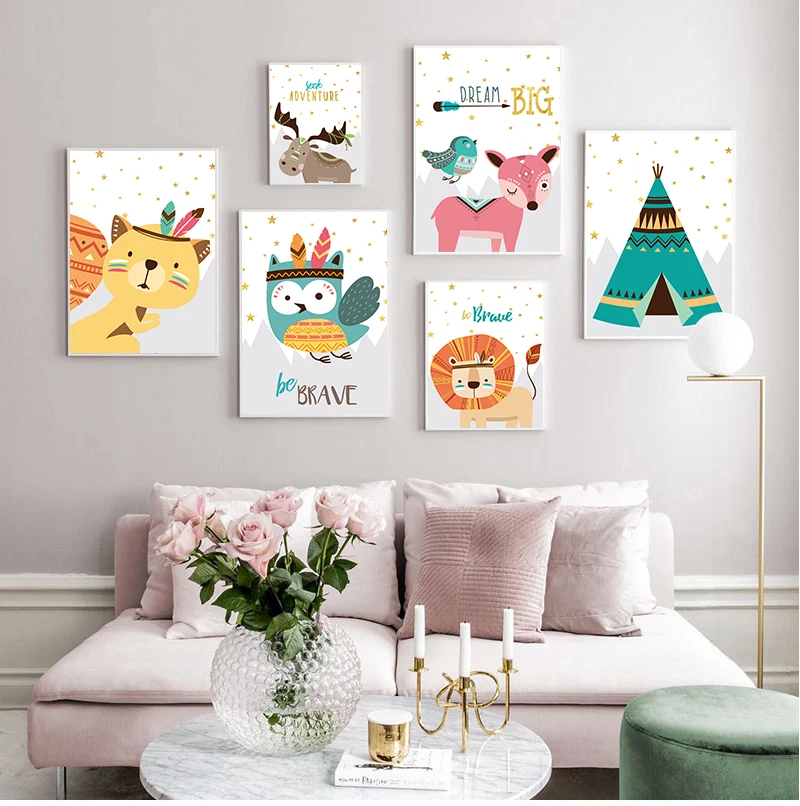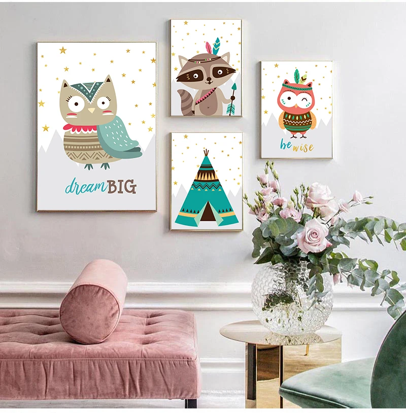 Bear Fox Lion Owl Raccoon Tent мечты, цитаты Nordic s и принты, настенная Картина на холсте, настенные картины, декор для детской комнаты