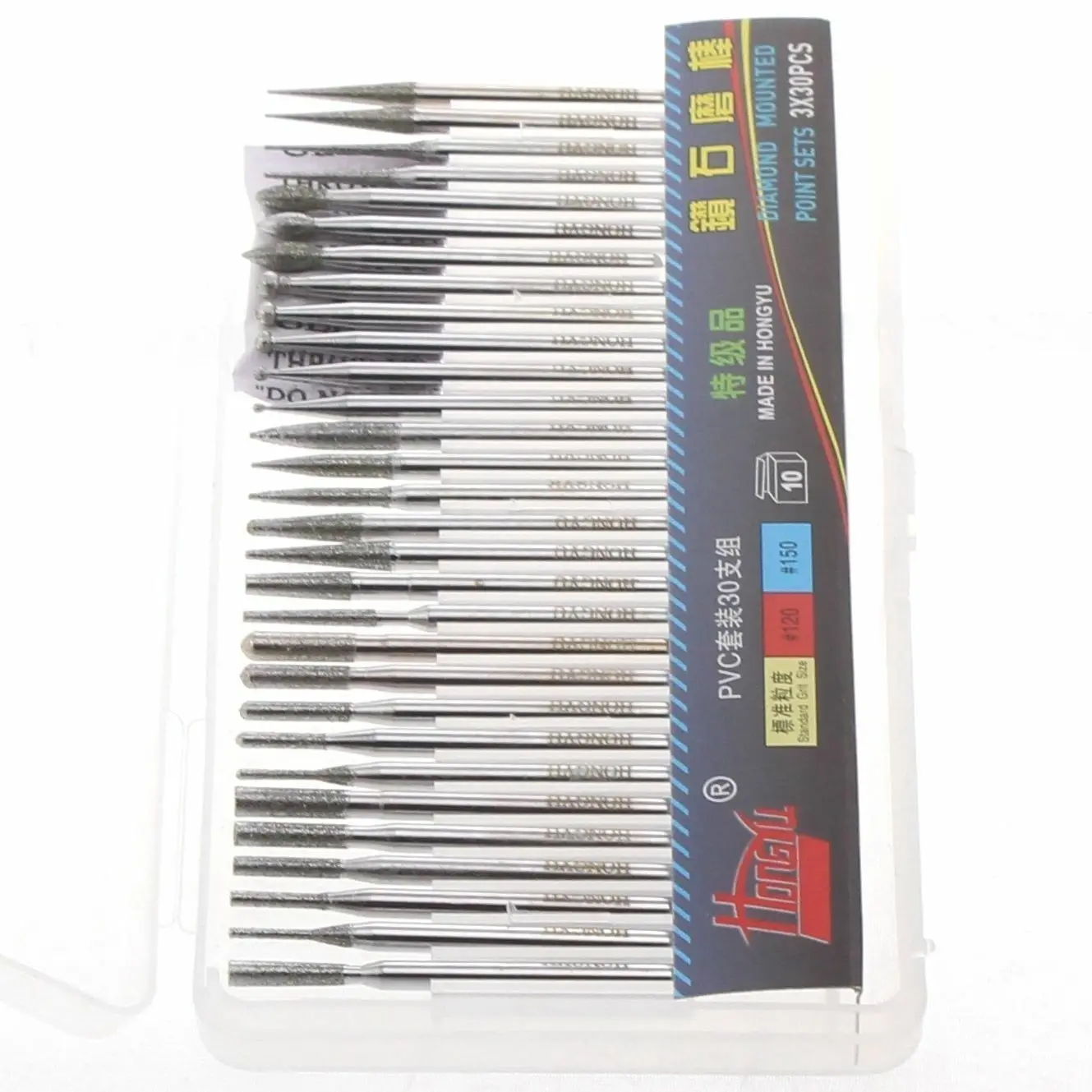 Набор профессиональных алмазных шлифовальных насадок, комплект из 30 абразивных насадок 18 дюйма с покрытием, хвостовик заусенцев