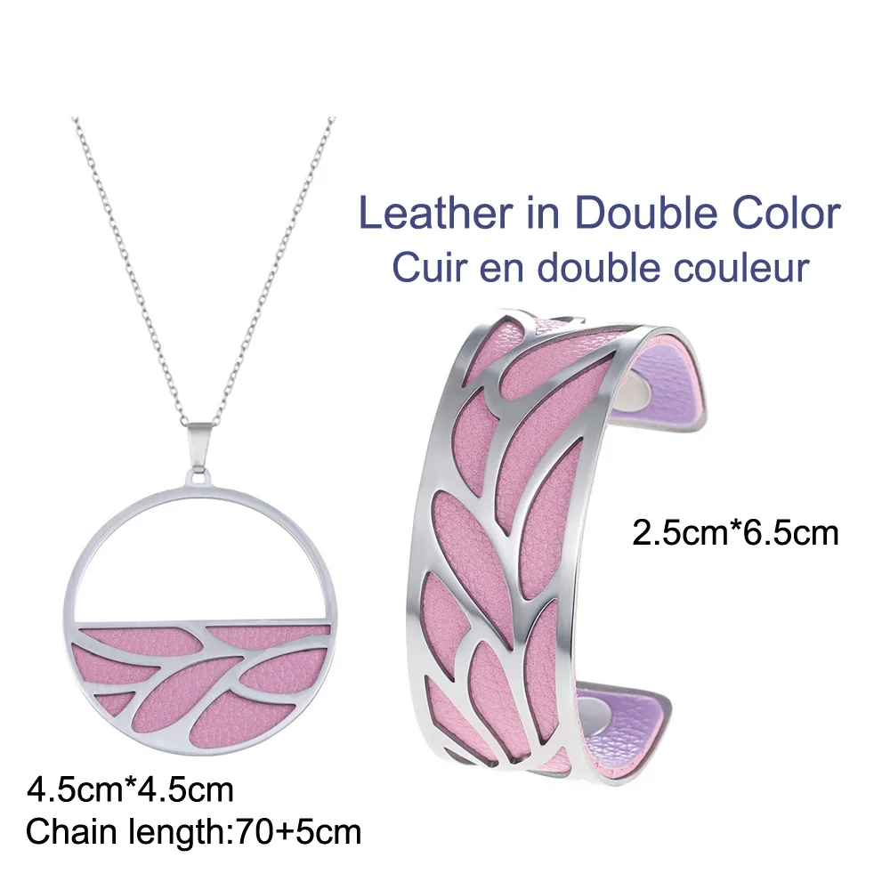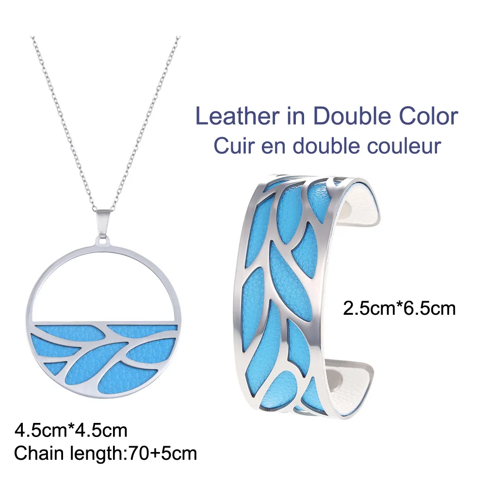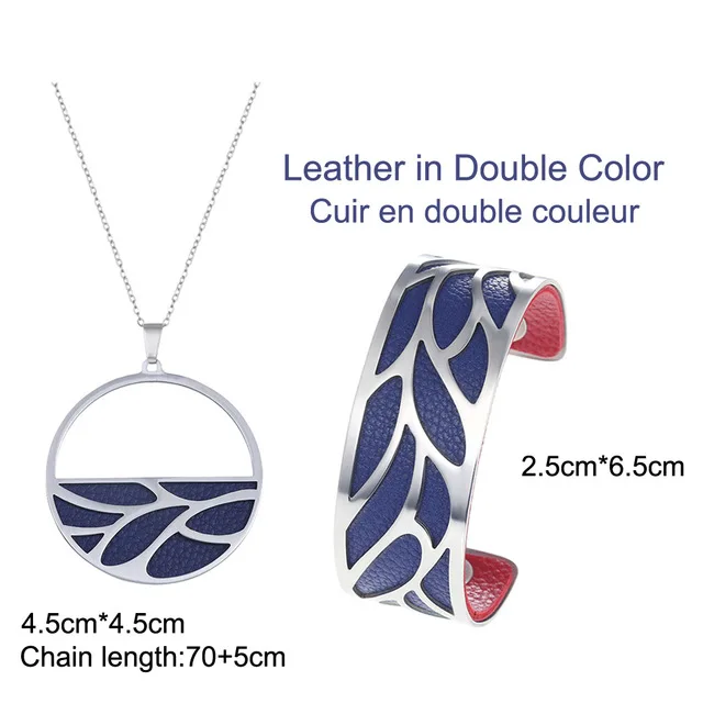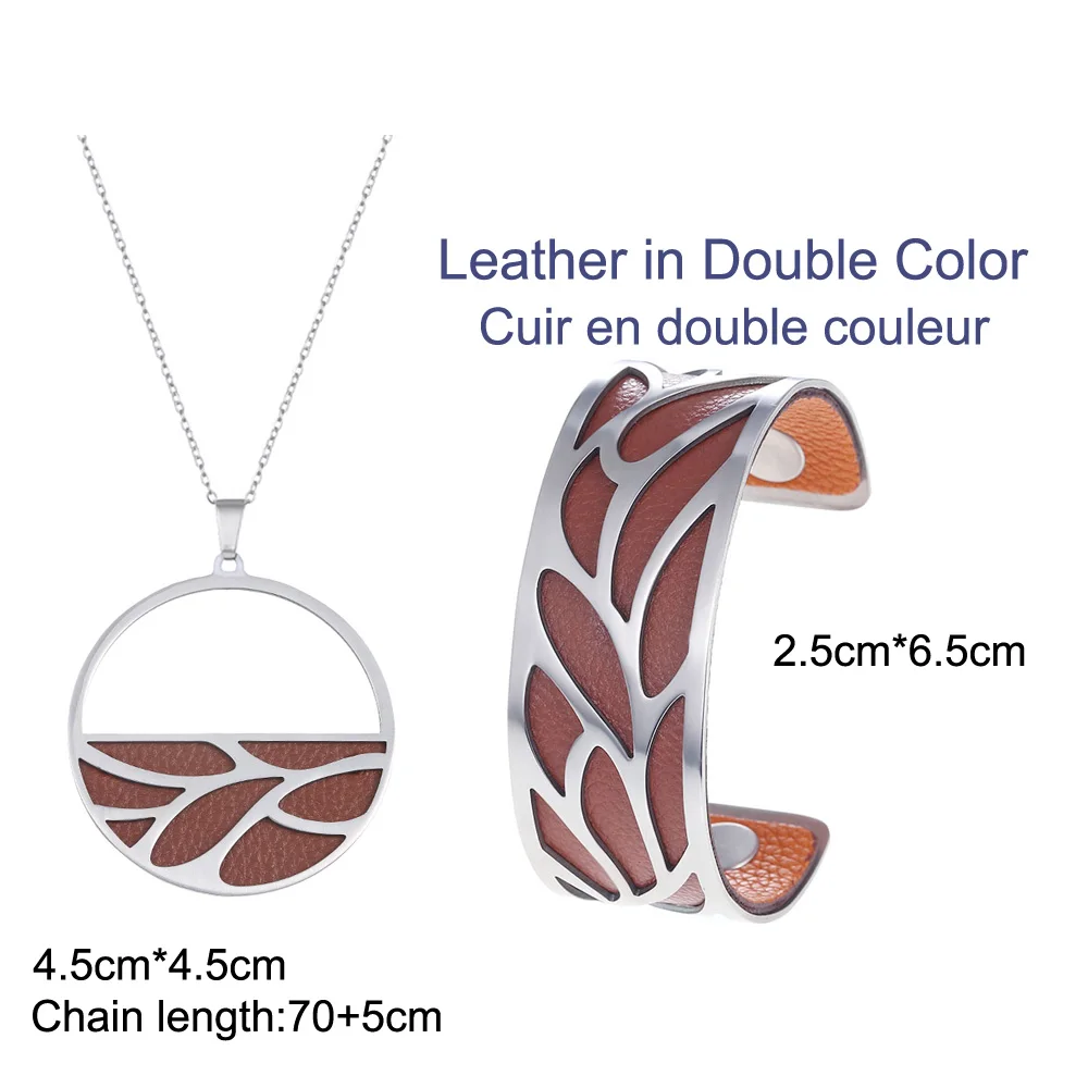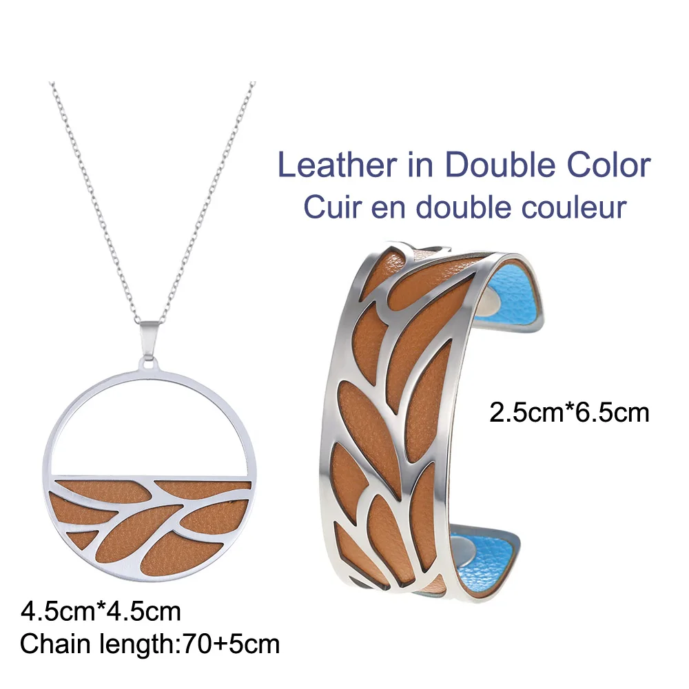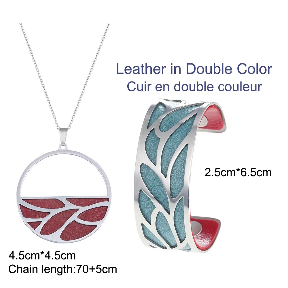 Набор браслетов и ожерелья из кожи со сменными листьями