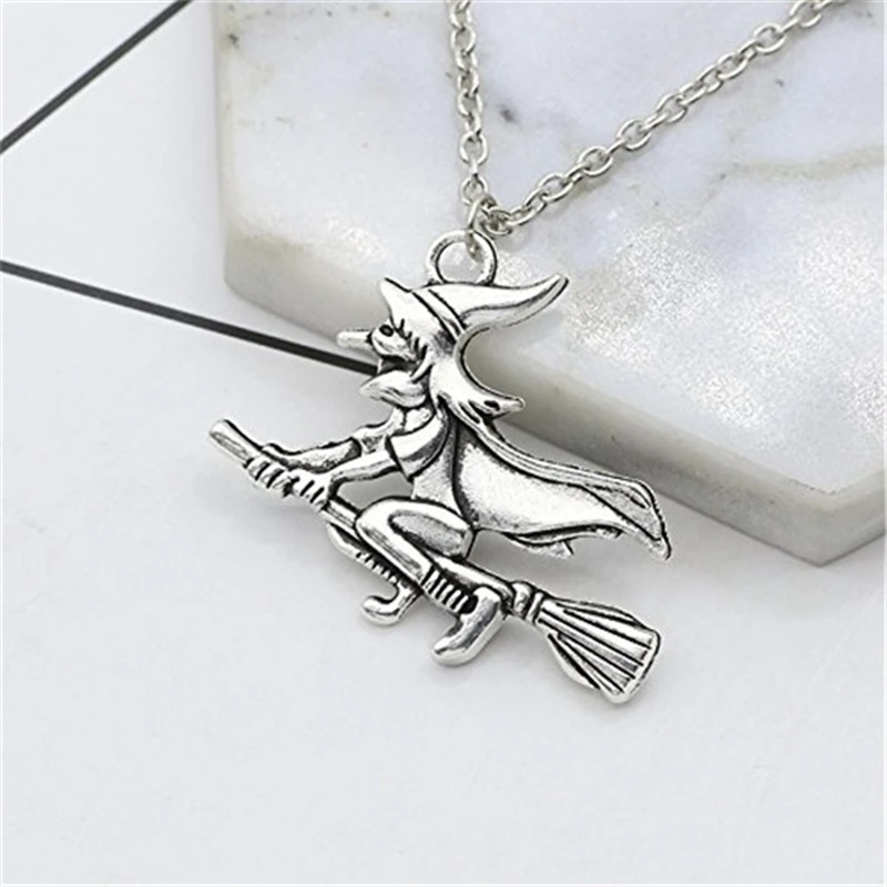Ожерелье с подвеской ведьма на метле, аксессуар для нее, модное ювелирное изделие в подарок на Хэллоуин