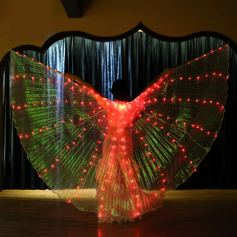 Крылья для танца живота, со светодиодной подсветкой, крылья принадлежности для танца живота, костюм с крыльями бабочки, для взрослых, с сумкой для палочек