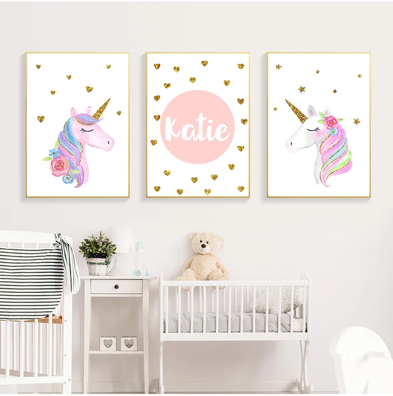 Настенная картина с именем единорога на заказ, Картина на холсте в скандинавском стиле для детской комнаты, украшение для спальни, детский подарок