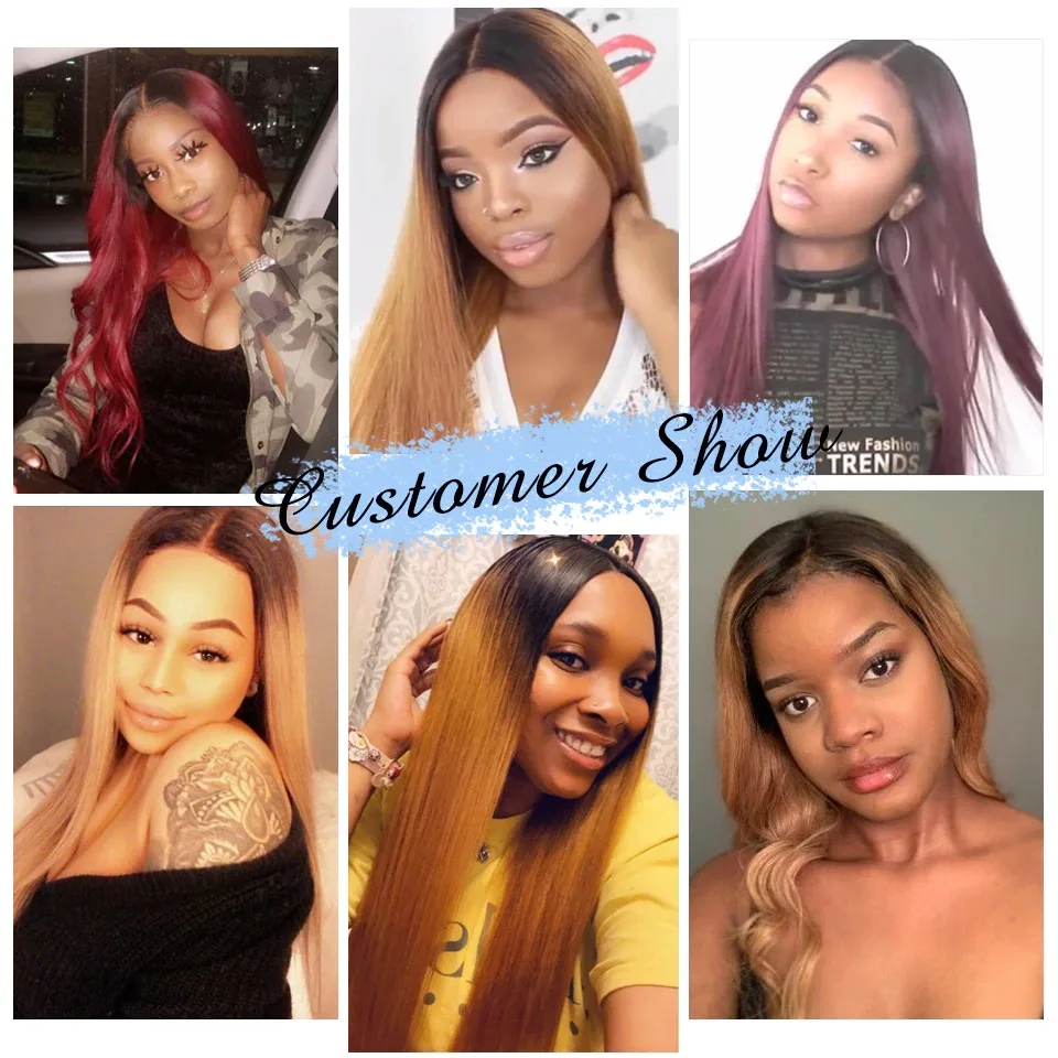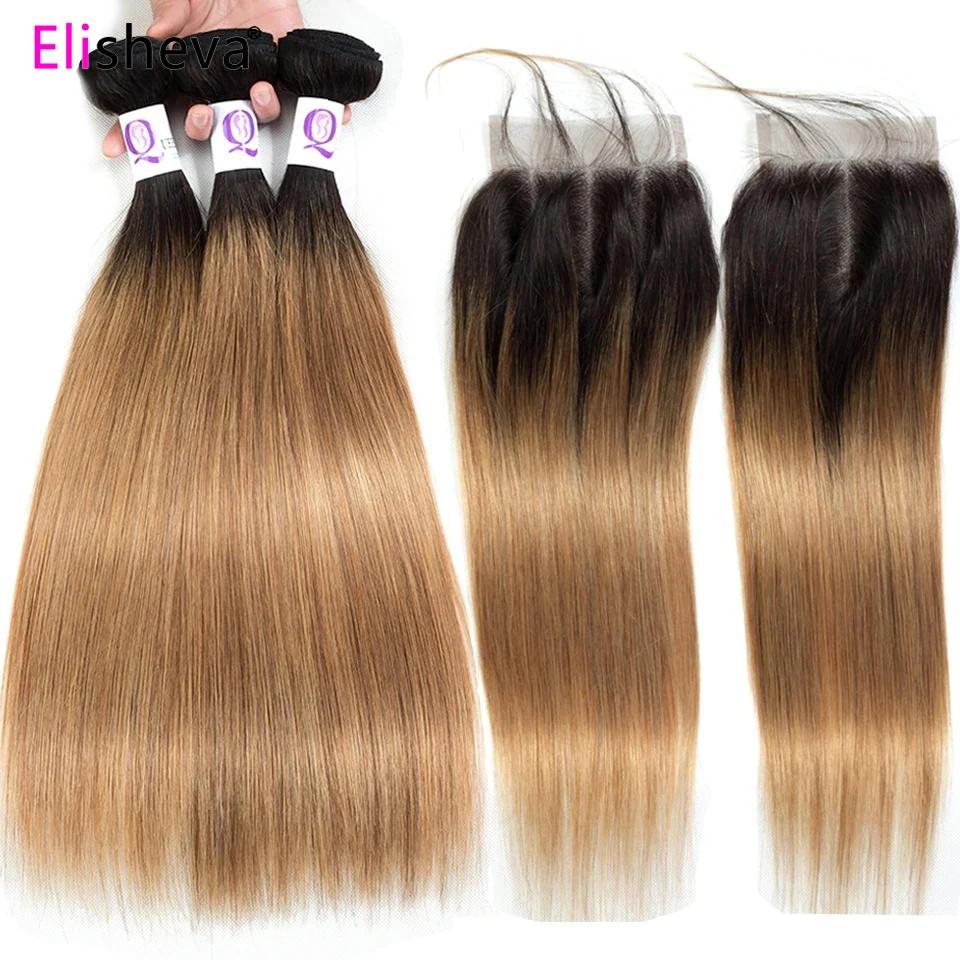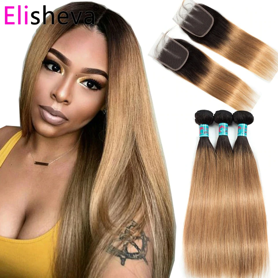 Elisheva цветные прямые 1b/27 пряди волос с фронтальной бразильской Remy человеческие волосы с предварительно выщипанными для черных женщин