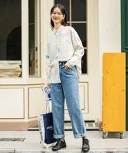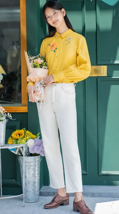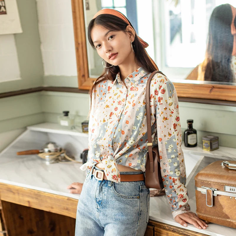Блузка женская хлопковая, с длинным рукавом, на осеньзиму