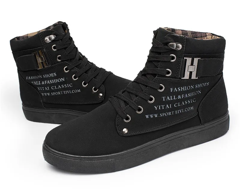 Кеды мужские с высоким верхом, Вулканизированная подошва, на шнуровке, повседневные холщовые кроссовки, плоская подошва, большие размеры, черные, унисекс, Осень-зима 202