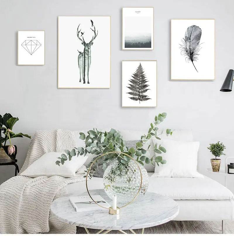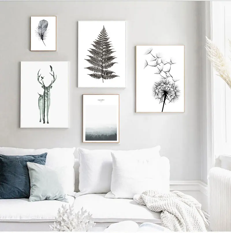 Скандинавский Черный Белый олень Одуванчик скандинавский стиль стены искусства холст печать картина украшения Картина декор гостиной