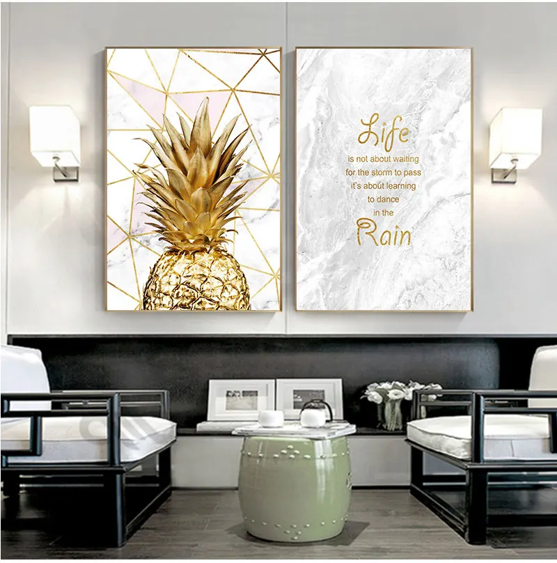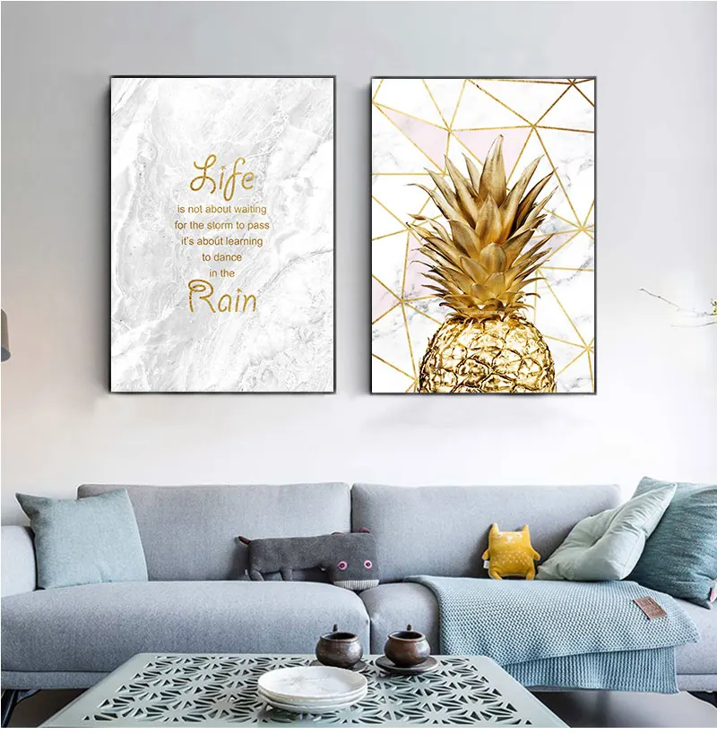 Настенное изображение золотого ананаса, s-принты, мотивирующий рисунок цитата, мраморные декоративные картины для гостиной