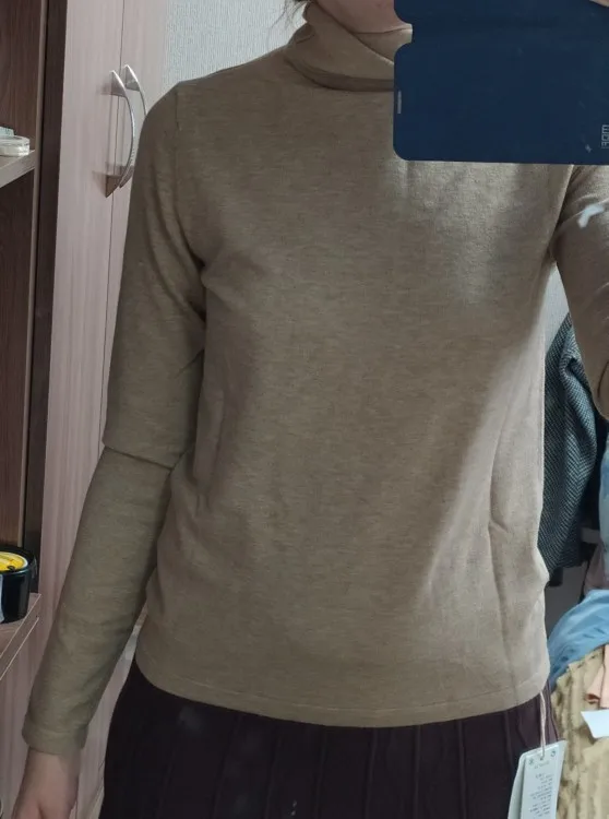 Водолазка хорошая, но воротник будет так как на модели, его нельзя подогнуть.