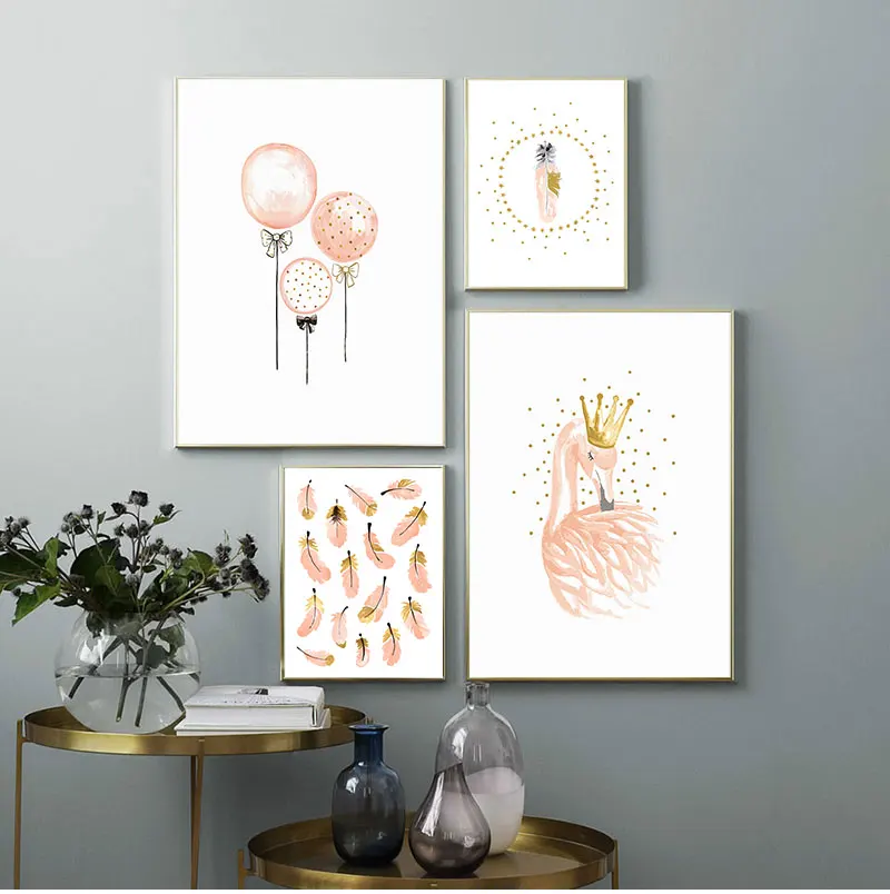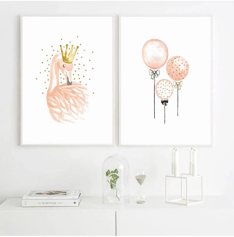 Скандинавский фламинго, цветок, настенное искусство, холст, розовый...
