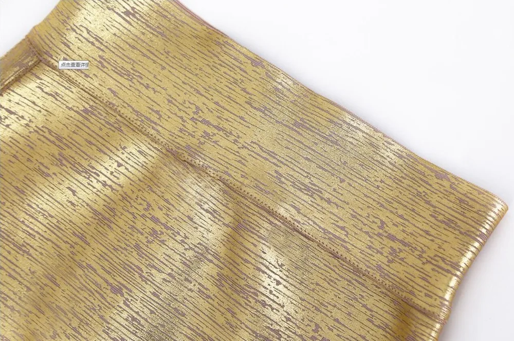 Женская облегающая юбка-карандаш, золотистая, бронзовая юбка до колен, длина 60 см, лето 2021
