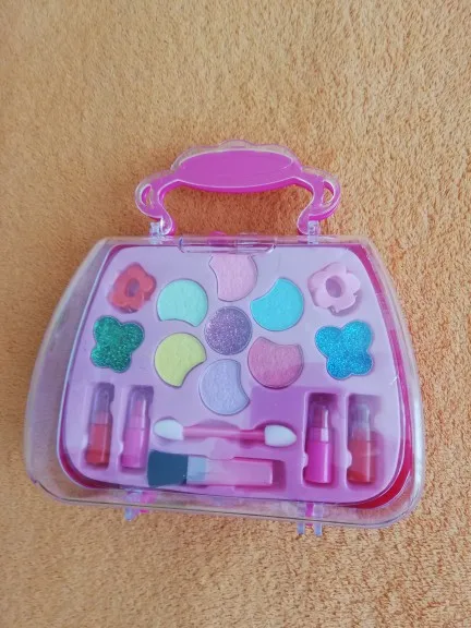 Разработано для детей. Включает в себя самые разнообразные аксессуары для макияжа и красоты