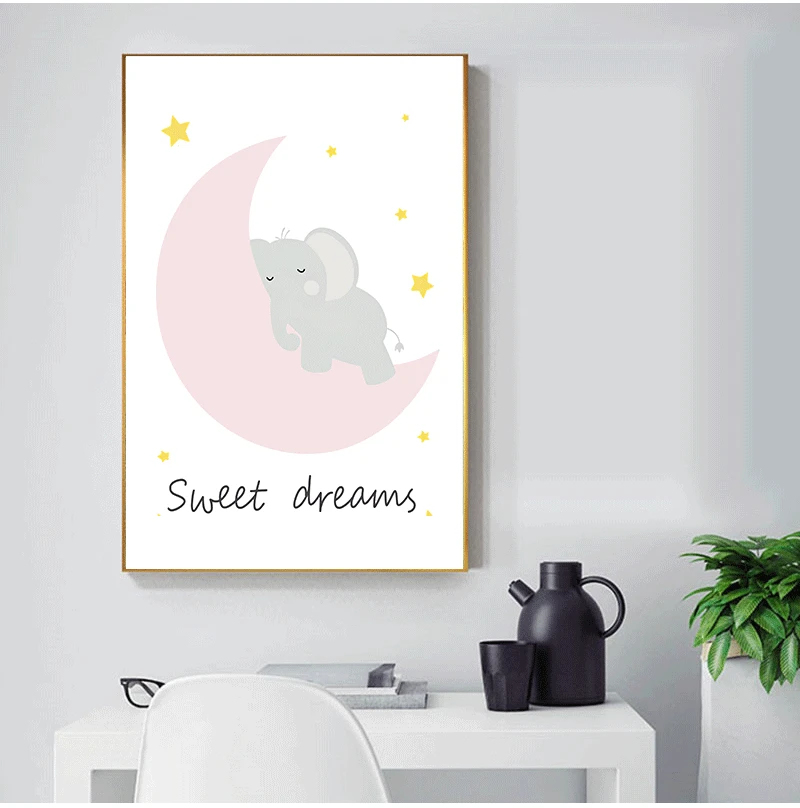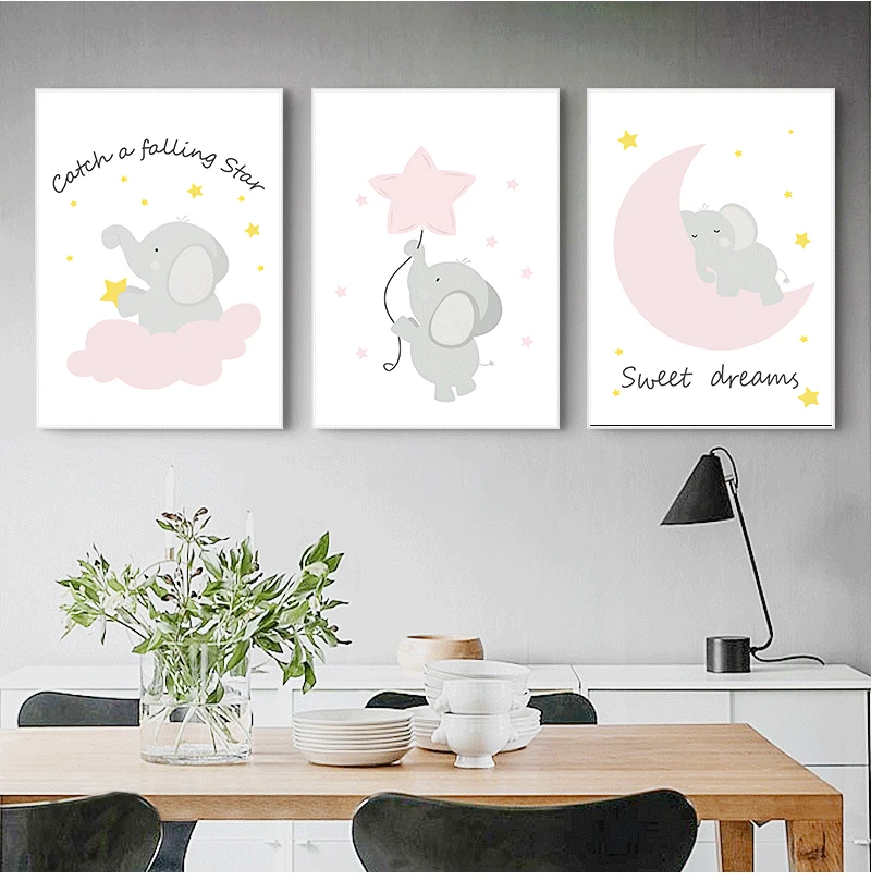 Розовый слон, звезда, холст, Детская печать, для маленьких девочек, детская настенная живопись, Скандинавское украшение для спальни