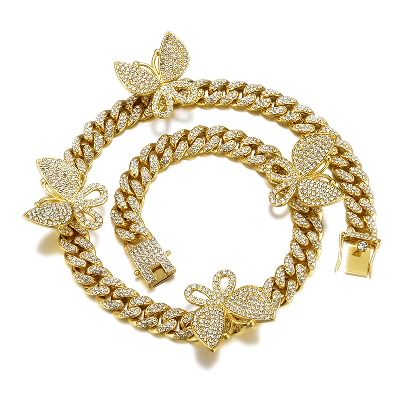 Цепочка Из кубинской панцирной цепи Майами в стиле хип-хоп, украшен...