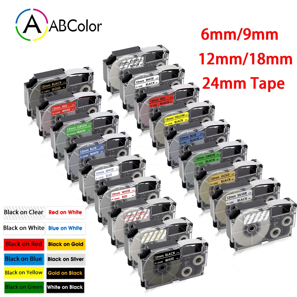 Лента для принтера CASIO XR-12WE, XR-9WE, XR-6WE, XR-18WE, XR-24WE, XR, 12WE, XR-12YW, для изготовления этикеток CASIO KL-60, 69121824 мм